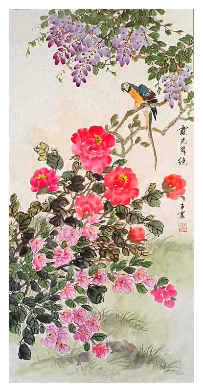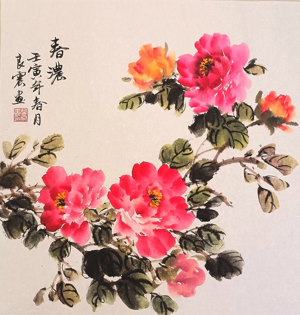 在画风画境的营造上,兰斋先生也是有对传统题材热爱深切,但与一些只顾于外貌的画家相比,兰斋先生的丹青作品则是更能体现出那种属于自然的内在韵味和逸气品味,尤其是在其众幅牡丹画作的创作上,这种超乎于众的闲情逸趣,便就更是尽显无遗!一幅幅牡丹画作,是有诗意盎然之品,正所谓唯有牡丹真国色,花开时节动京城!如此妙诗雅性,于今日兰斋先生的众幅画作中即能深感无限!笔墨化心象而致盈动,赋色契明艳而蕴自然,前者是有将抒发己意立为载体,淋漓素纸,畅意挥毫,后者则是有将静气品性卓然于形,风骨清朗,心源所彰!而此两点要素的相互融合,便也就是今日兰斋先生执笔绘丹青的真实情愫写照!丽而不骄,艳而不傲,上品修成,物我两忘!