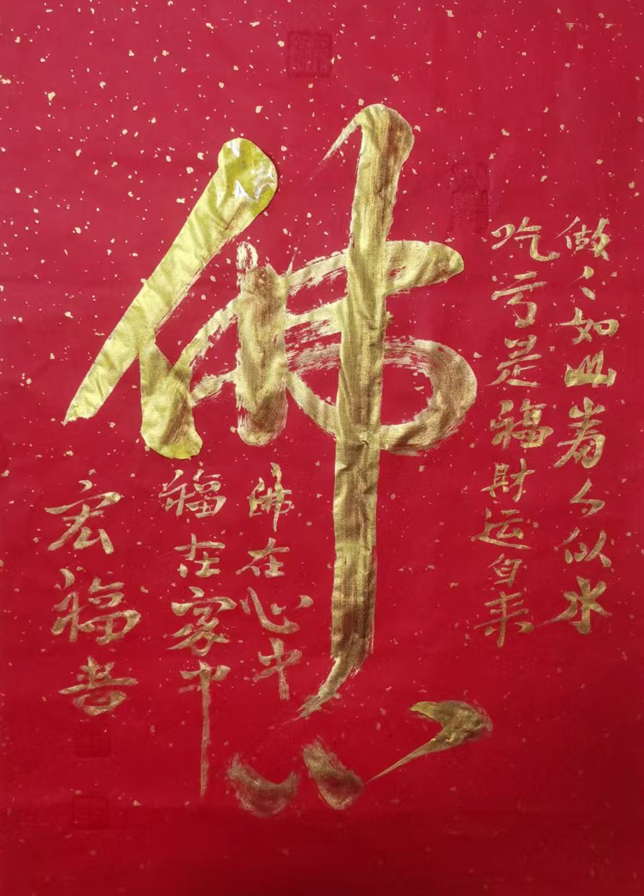 2021年5月在第四届“翰墨盛世”全国书画大赛活动中,书法作品《佛心》《福》巜夀》字,荣获一等奖(金奖)。作品《家和万事兴》在2021年春拍中以38000成交。