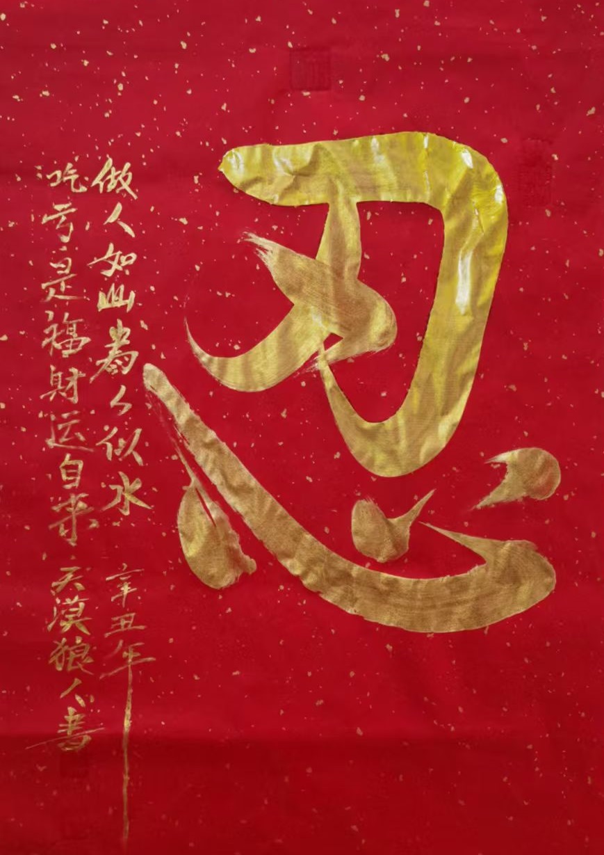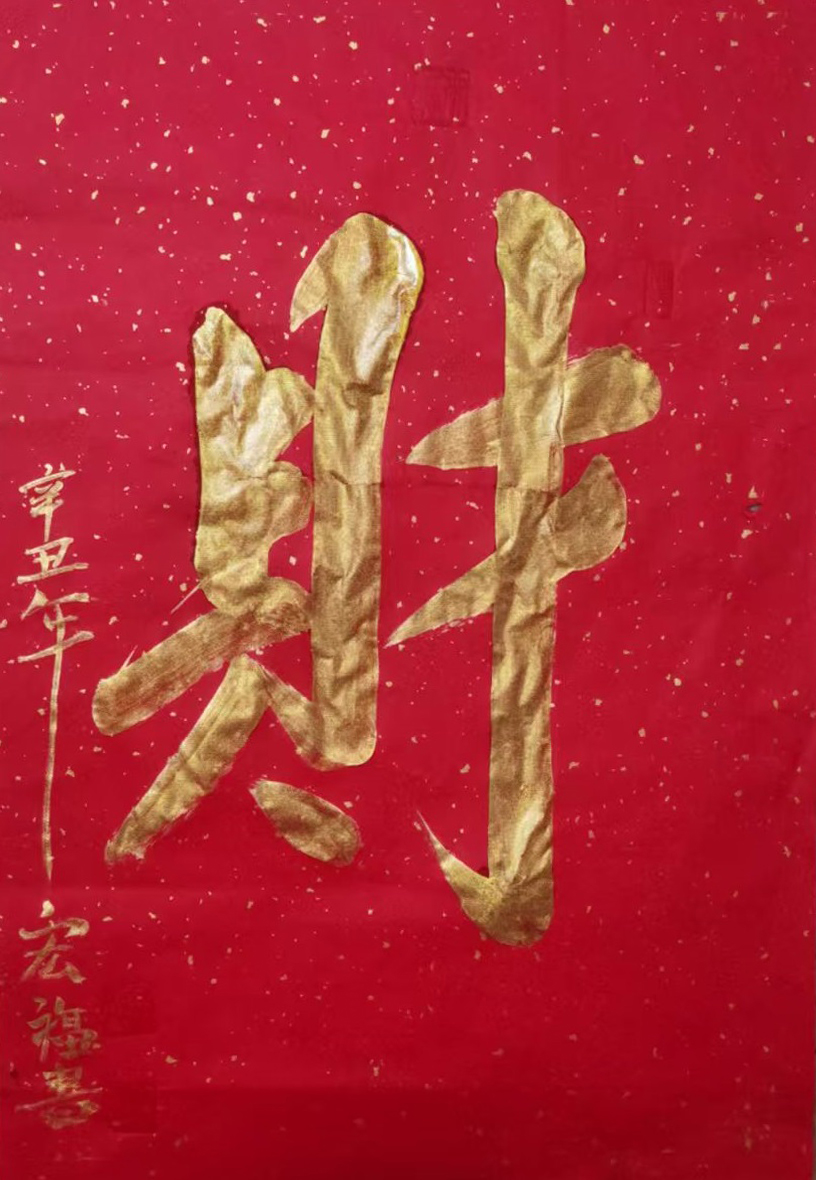 2021年1月百花迎春全国书画大赛中,作品《福 寿财忍善》荣获大赛金奖