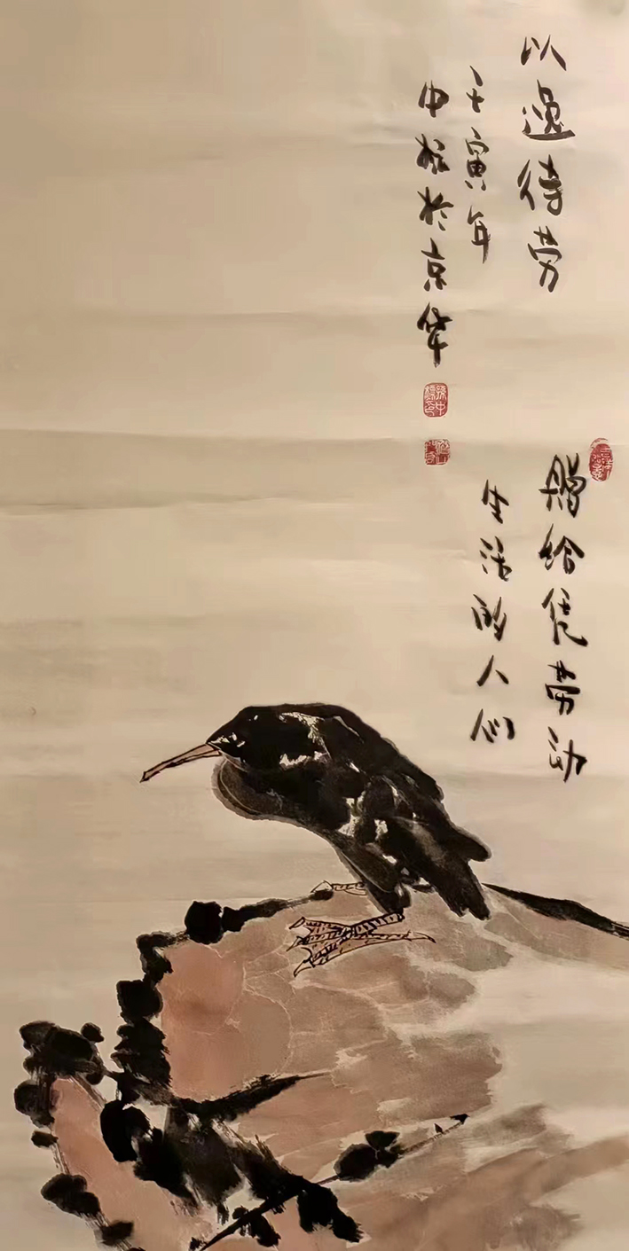 从写意画的艺术视角上来看,孙忠彪先生的众幅丹青作品显然就是有益于这种寄情和抒情的写意融合,而其笔墨中的精神散漫和意韵里的浸染畅达,也同样是能为其作品带来深厚的境界折射和自然底蕴!因此对于观赏者来说,欣赏一幅写意丹青作品的要点并不是仅在于表象技法,那内在的境界感受也同样是一个不容忽视的审美路径!且今日孙忠彪先生于丹青创作中,也恰恰正是有悟于此不二法门,在笔墨技法上不拘泥于对自然的复刻,而是转以性情所挥,旨在表达心性和营造感性,而画中那丰富的笔墨质感也更是能为整幅花鸟形意带来一种更加醇厚的写意视感,是达风骨之妙然,也见雅性之蕴藉也!