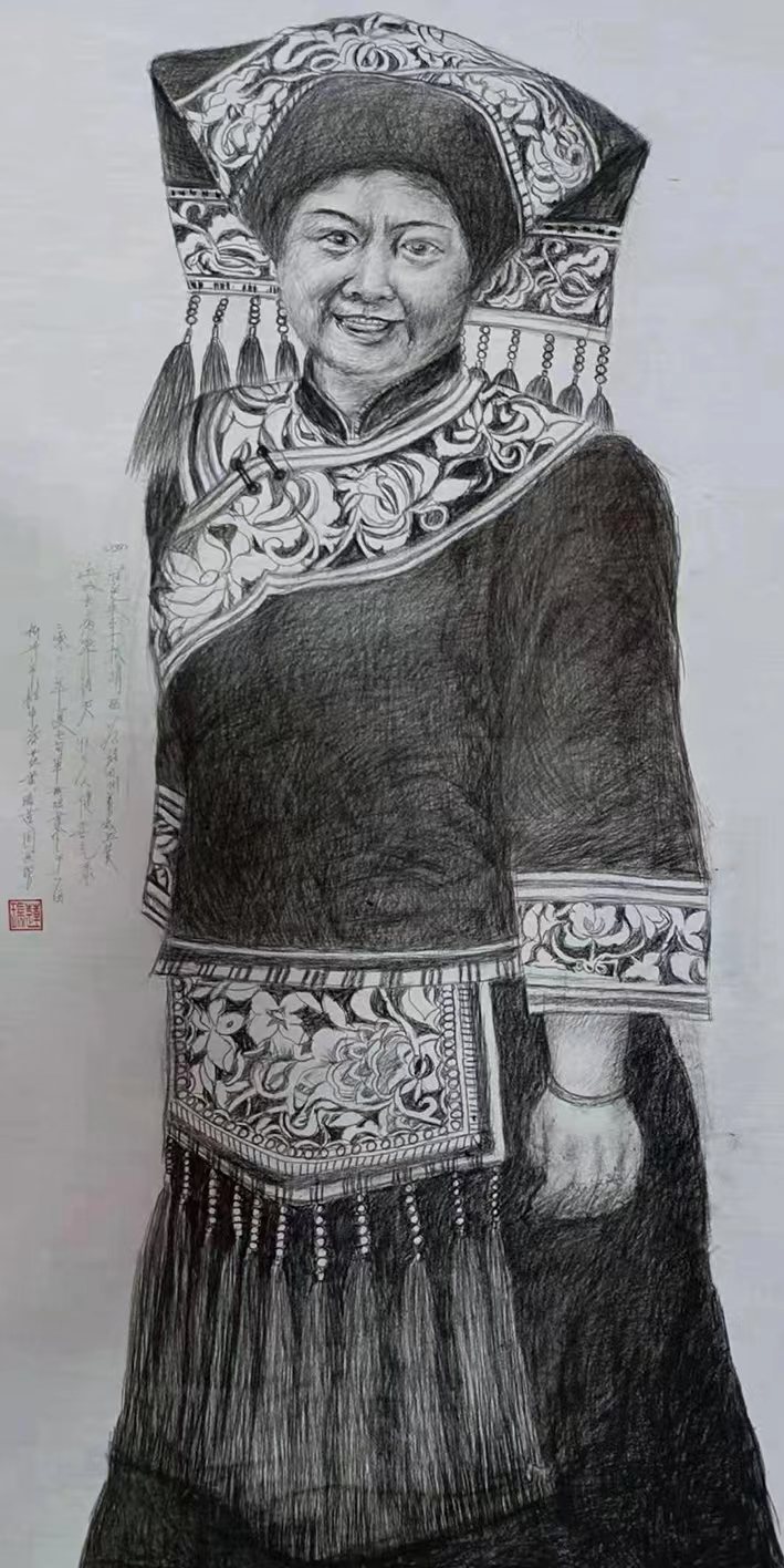 2021年为庆祝中国共产党成立100周年,创作宣纸素描壮女系列人物画,获中国书画百年巨匠传承人称号与证书。