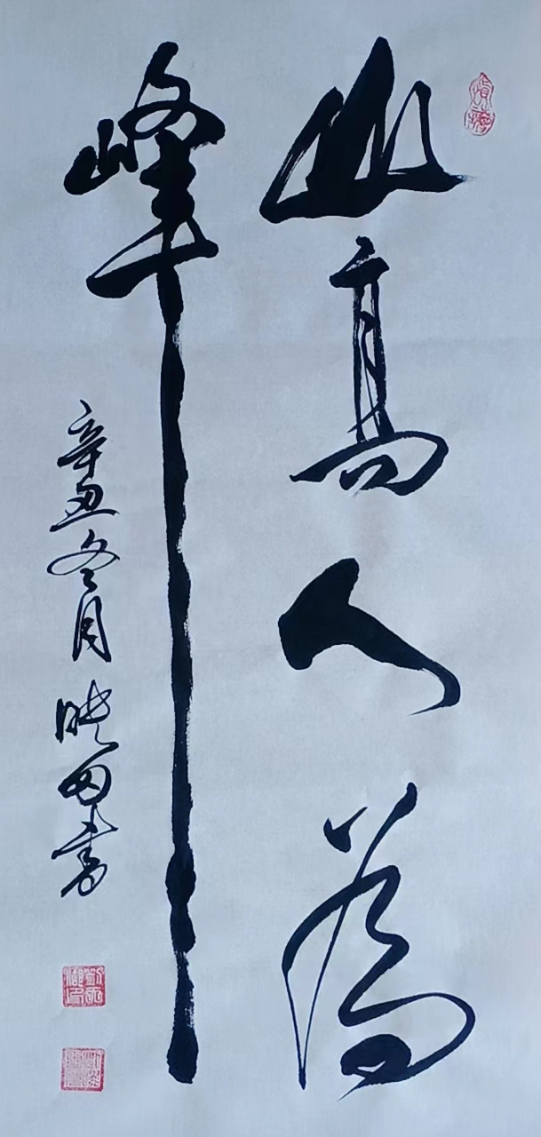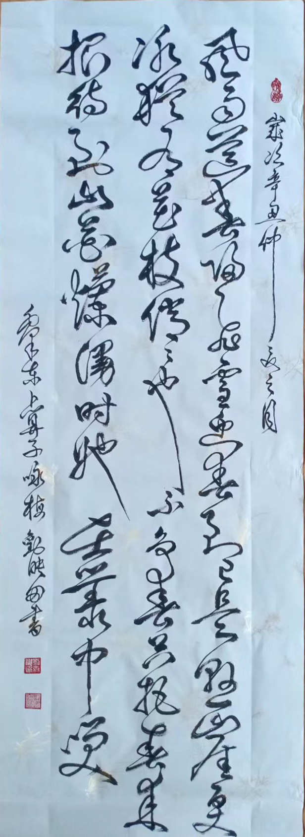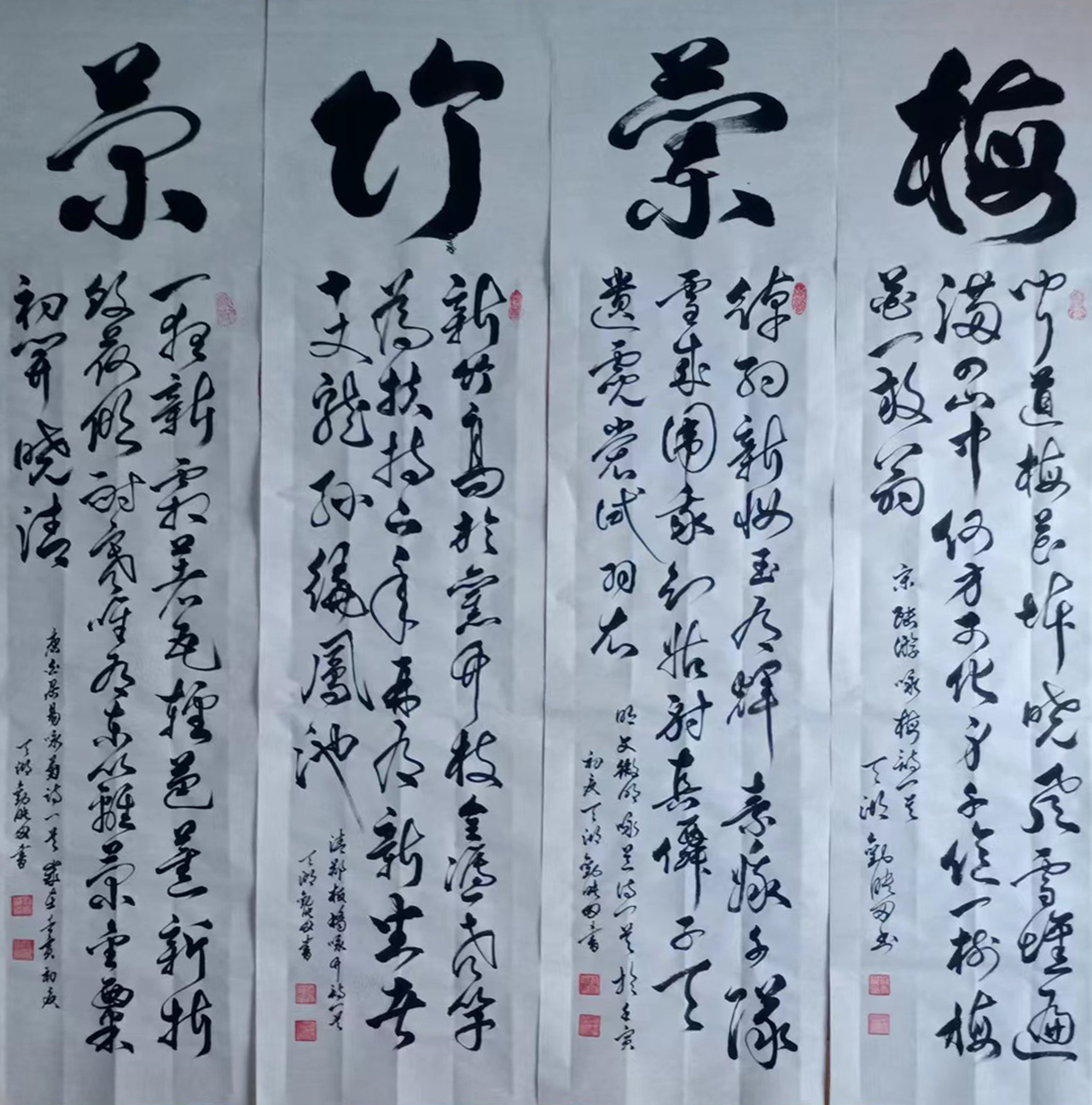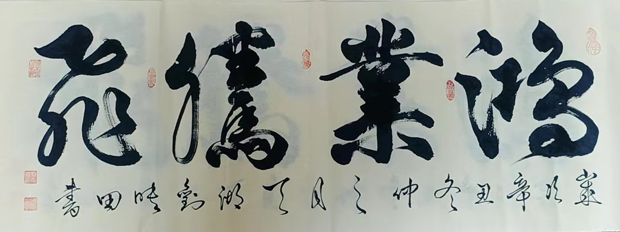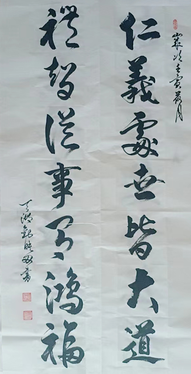 平时我给当地群众写写字画,必要时执执笔写写字,自己也觉得其乐无穷,希望今后能为发扬和光大我国的书法事业而贡献点力量。