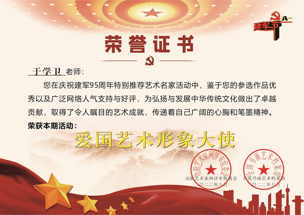 于学卫(於学卫)、笔名:天台山人、斋号:静默,浙江台州人。现为国家一级书法师、宁波学卫书院院长、中国国际书画研究会青少年书画工作委员会/书画艺术人才素质测评项目鄞州区负责人等。