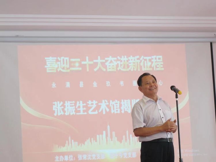 2022年8月19日张振生艺术馆在河北省廊坊市永清县韩村镇九兴区正式成立。出席此次活动的嘉宾有永清县副县长张新华,统战部副部长张建军,市老年书画家协会会长郭振一,北京吉祥大剧院院长富博洋。参加此次开幕式的有河北省美术学院祝贺张振生艺术馆开幕、永清县鼎智文化传媒有限公司、永清县老年京剧协会参加了开幕式及学会全体人员、永清县新联会、金玖书画中心、艺术家代表、企业代表等。