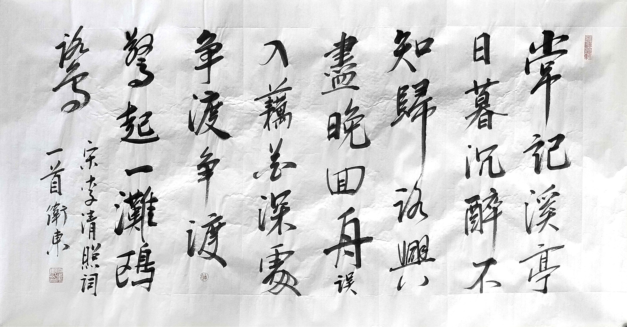 诸书兼优,文化长存。包先生的行书、草书创作,则带着鲜明的抒情属性,执笔在手,运笔在心,以书法言心绪,笔迹成为心迹的镜像,恰似书圣微熏写下兰亭序,亦如王献之真情作下中秋帖。以二王法帖为依法,以书谱所论为因由,带着放手写心的笔墨情愫,写下一件件精彩的行草佳作。凌空杀纸拟写秋鹰逐兔,左蹙右盼循由太极拳法。书法之动态与节奏,与音乐太极相依相合。浊而静以徐清,安而动以徐生,书法称为“书道”,道法自然,此谓最妙!孤蓬自振,坐沙惊飞,执笔作低旋回翔之状,令书法玄妙代不绝人,可以让文化印象亘古相续!