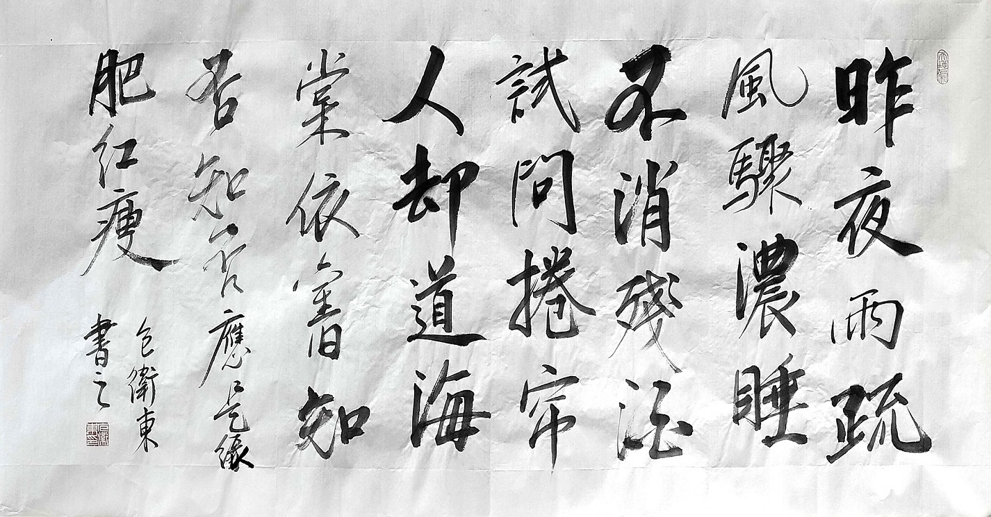 人言“楷法无欺”。一位书法家的功力如何,楷书一体可以证见。当代书法习成者,不作楷书的现象比比皆是,以至于下笔无力,不能写出龙跳天门,虎卧凤阙之姿态。反观包卫东先生的楷书作品则以颜楷为筋,复以柳楷为骨,参意欧楷用笔的奇险,以令楷书上下非齐平,左右非方整,高低有趣,八法精研。在楷书传承的基础上,包先生又作出了自我风格的塑造,以瘦劲见精神为主旨,形成了鲜明的包体格局,果然是借古开今,笔墨当随时代的创建成就。隶书亦称汉代正书,包卫东隶书创作参照楷书法度,写得严谨而生动,在左掠右挑间把隶书写得丰姿多神,儒雅悦目。正是因为有如此精要的书法真功夫,所以他的书法有专业影响力,也有相当突出的收藏价值潜力。观其书法,如见翰墨的琼花玉蕊。收藏其书,则是艺术品的和璧隋珠!