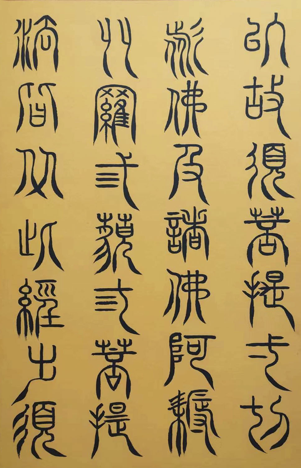 深研篆籀秘籍,功达配天之极。韩学友先生不仅学问素养极深,而且禅修慧根颇深,他以书而弘法,不住色声香味触法,心无挂碍写下三十二体篆书金刚经,成为法布施的无量功德,也是不世之功的书法宝典。两年心血凝成,几十载修养结晶,十册金刚,价值连城。站在书法的角度来看,是艺术品中的孤标尘外,站在文化的角度来论证,则是亘古未有的禅修新法门,独一无二,孤标尘外。这是一位书法大家与文化大师用双重修养加持而成的经典!作此一部足以大著其名,更何况先生还有三十二篆不辍抄经一百零八部的弘大工程!让篆书与三藏际遇,正是韩学友皈依艺术文化征途中的星辰大海……