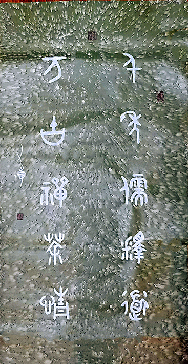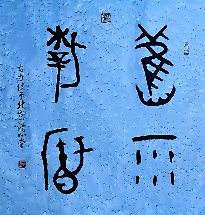自幼爱好书法,初学颜真卿楷书,后上溯汉魏(石门颂)(张猛龙)等北魏元氏墓志,篆书李斯、邓石如、吴昌硕等,受前辈大师影响,潜心研习铁线篆书及甲骨文、金文、瓦当文、石鼓文、大篆、小篆等。