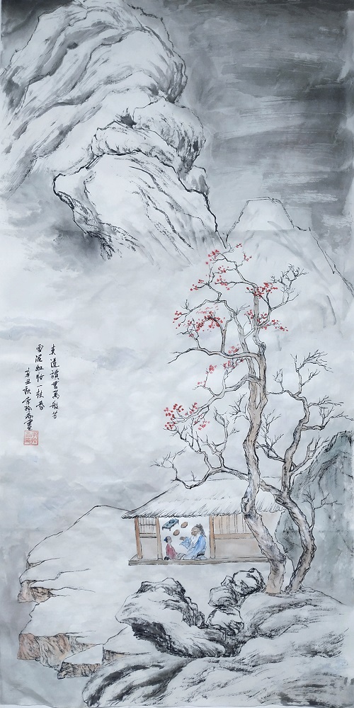 “形而上,谓之有采”中国绘画是写意精神,就价值与意义而论,也是我个人对中国画的理解,以形写神,形而上之神采。艺术源于生活而又高于生活,跟随我们这个时代,通过对生活的感受,对大自然的热爱,大胆地用笔墨有力地表达对新时代生活的歌颂,树立审美高度,用心创造,我们这一代画家应以前辈长辈为榜样,学习与传承他们成于精勤,止于至善的境界,用超然的胸襟,画出中国人自强不息的精神,画出中华民族的气魄,画出永远屹立于世界的中国魂。