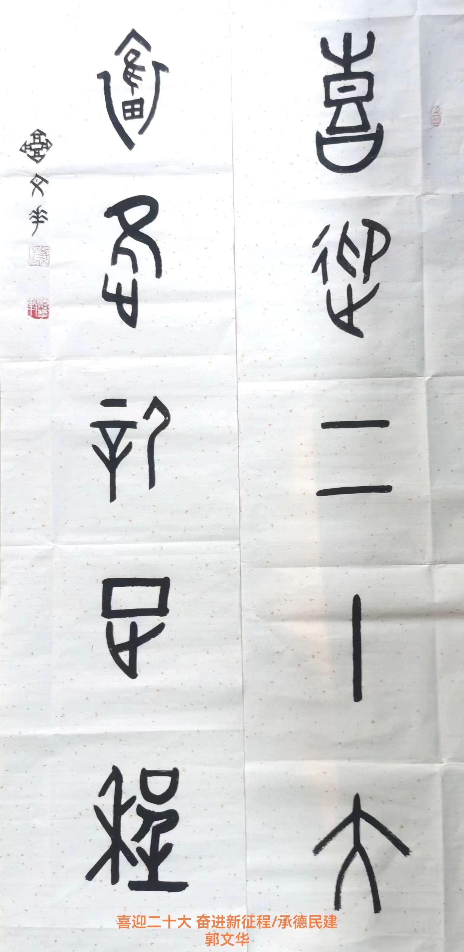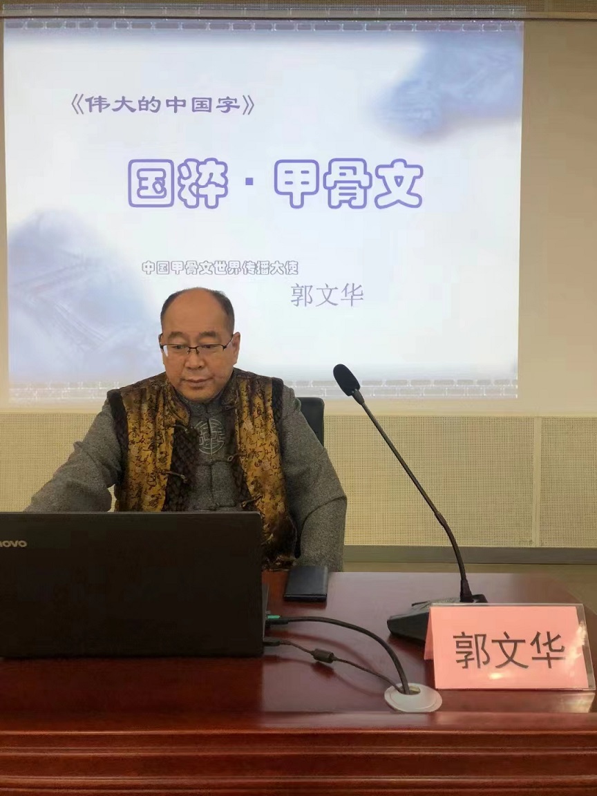 郭文华 中国民主建国会会员,民建承德市委会教科文卫委员会副主任;甲骨文世界传播大使,书法家。中央美术学院客座教授。作品作为国礼先后赠送给俄罗斯总统普京;刚果布总统萨苏;埃及总理 伊萨姆沙拉夫阁下;联合国秘书长 潘基文 ;国际残奥委主席 Andrew Passion等30个国家元首或国际组织领导人。以及格林纳达驻华大使 戴艾美;刚果布驻华大使 德妮艾尔奥瓦萨等……40余位大使。 “郭文华 走近甲骨文传承古文化 全球百城巡展”已经完成53个国家。21个机场国际厅 出港或入港,悬挂郭文华写的甲骨文书法作品。