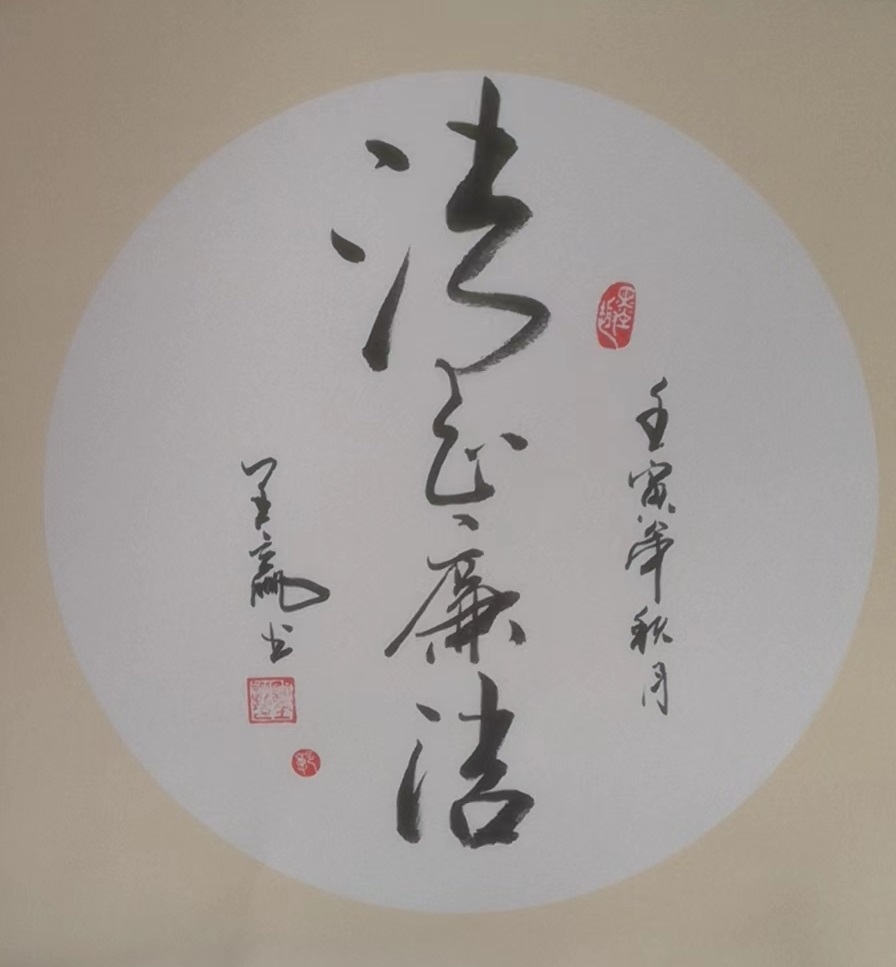 在作品的笔墨技法和结构结体方面上,郭全迎先生也是有赋于独特的创作体系!通幅笔法行运,是有藏露之分,更得高古之气,以至于通幅笔线结构奇正相映,畅达和谐。而在用墨之时,郭全迎先生也是不负功成,墨意所现,皆是有于朴厚中赋质感,沉稳中赋平貌,凝练所致,正气遒健!纵览作中字字书体,每个字势可谓都是八面出锋,健朗潇洒,远品可感张逸之高昂,近品可察急迅之跳荡,由此情绪所抒,已然是尽叙于其间!