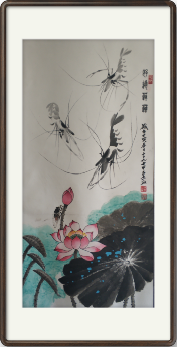 作品《龢》水墨龙蝦国画,作为国礼被穆斯塔法·萨法日尼大使收藏;