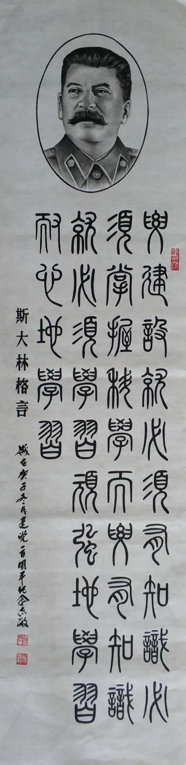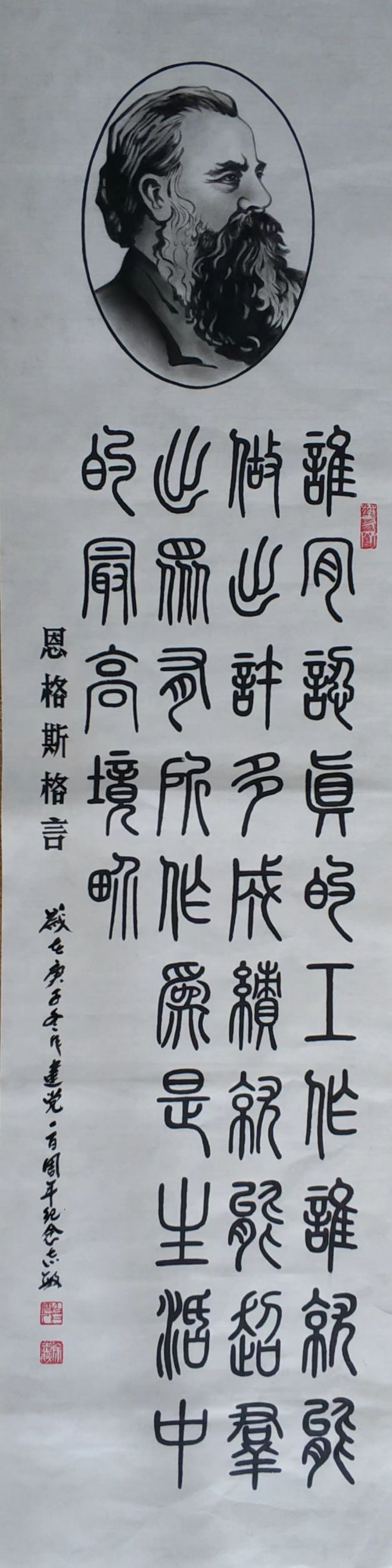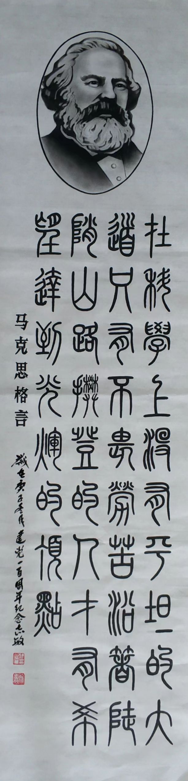 作品《中老两国和两国人民友谊万古长青》民间炭精画由老挝写生基地、老挝委员会主席陈绍钢珍藏;