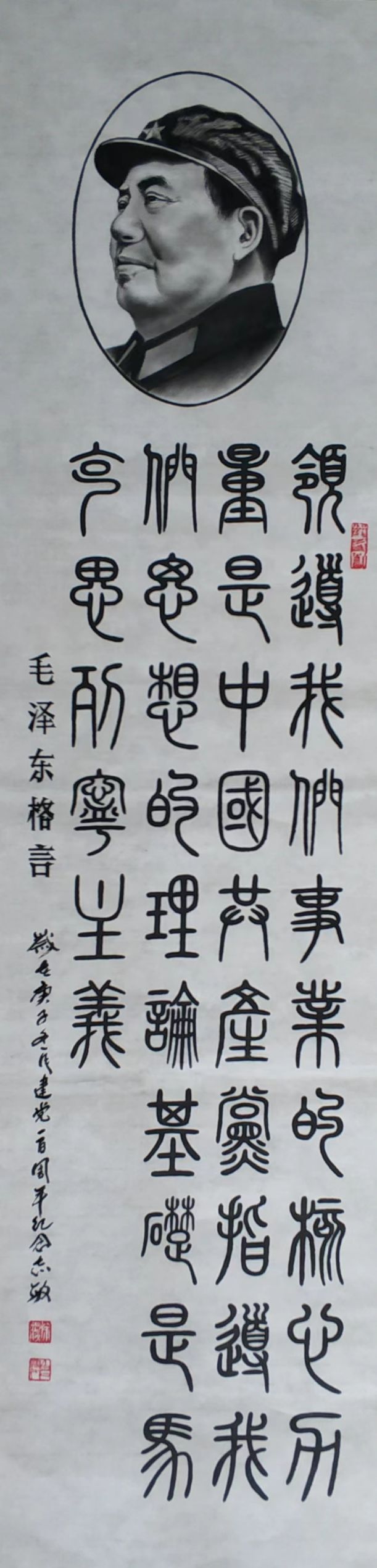 作品《世界领袖 光耀中华》书法、国画作品由纪念毛泽东主席诞辰125周年活动组委会收藏;