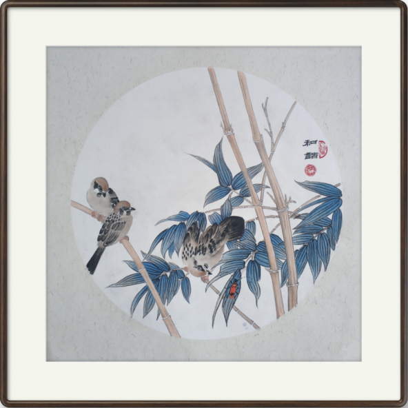 作品《幸福家庭》国画由韶山红色文化研究会刘桂芳会长珍藏;