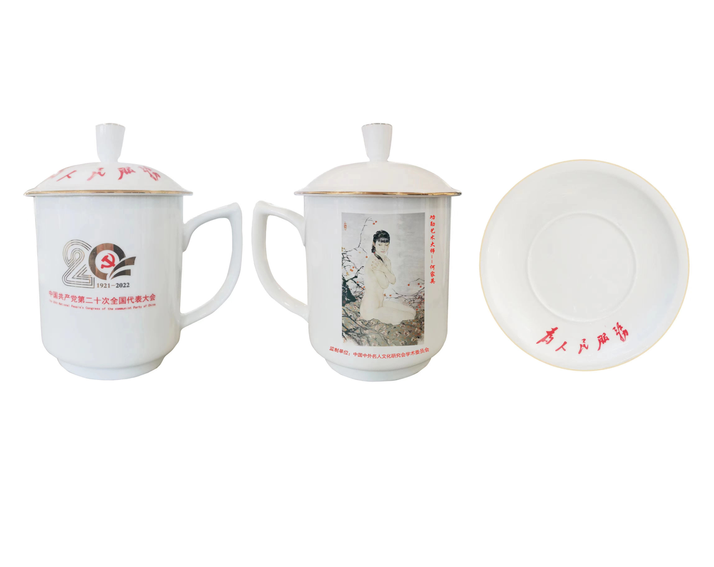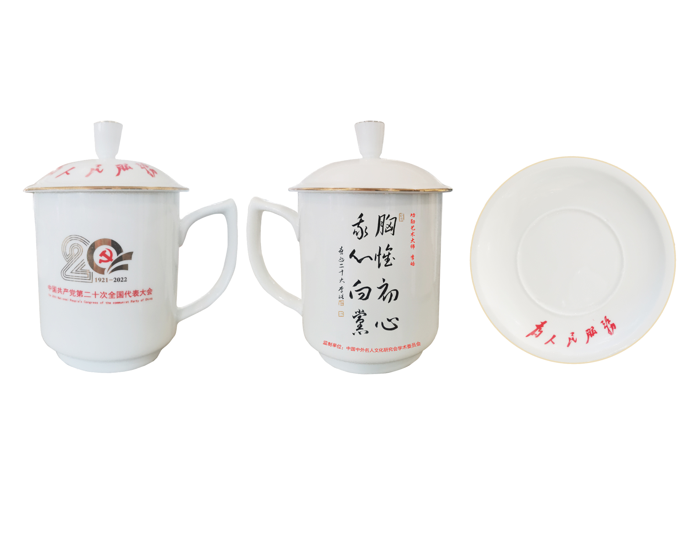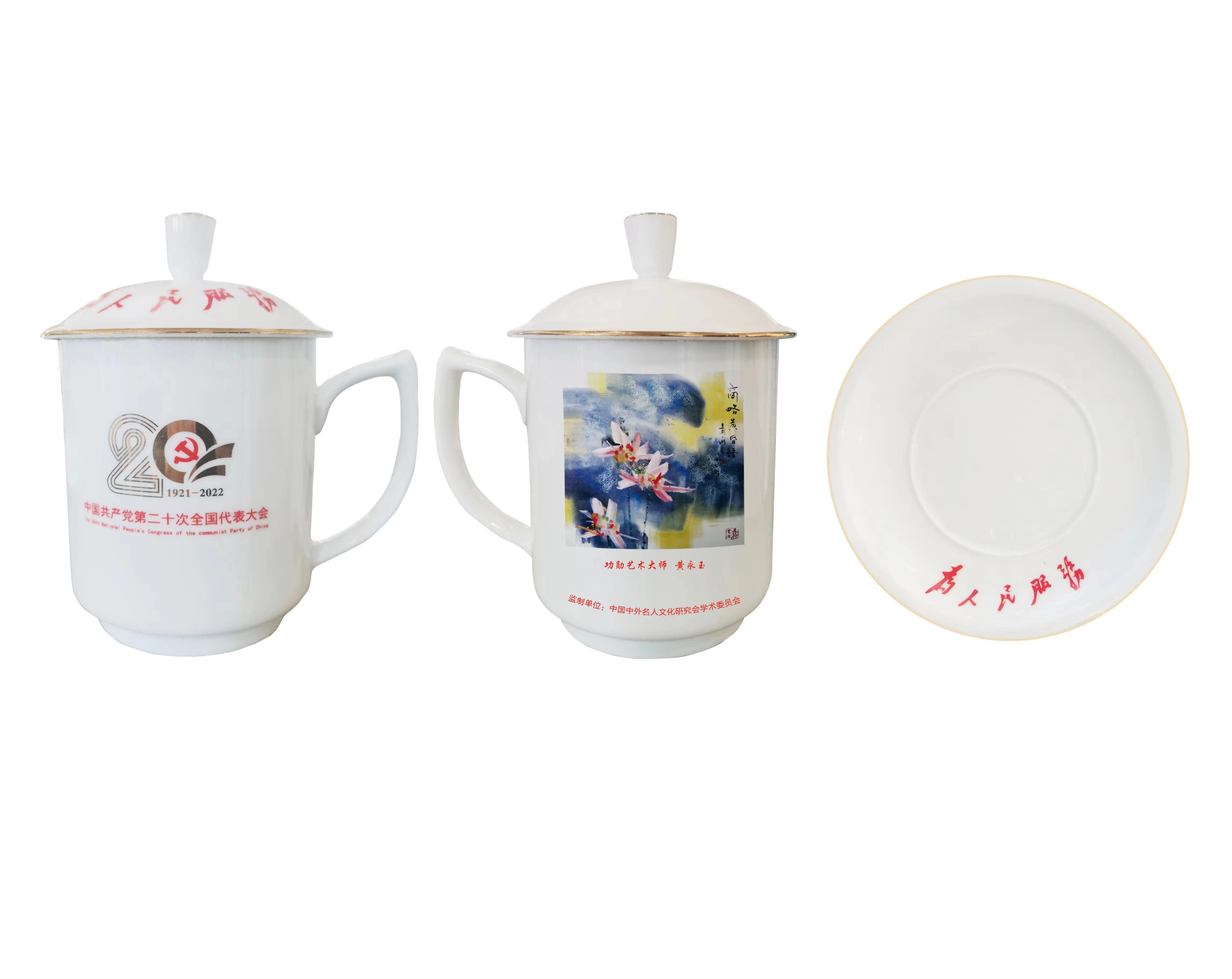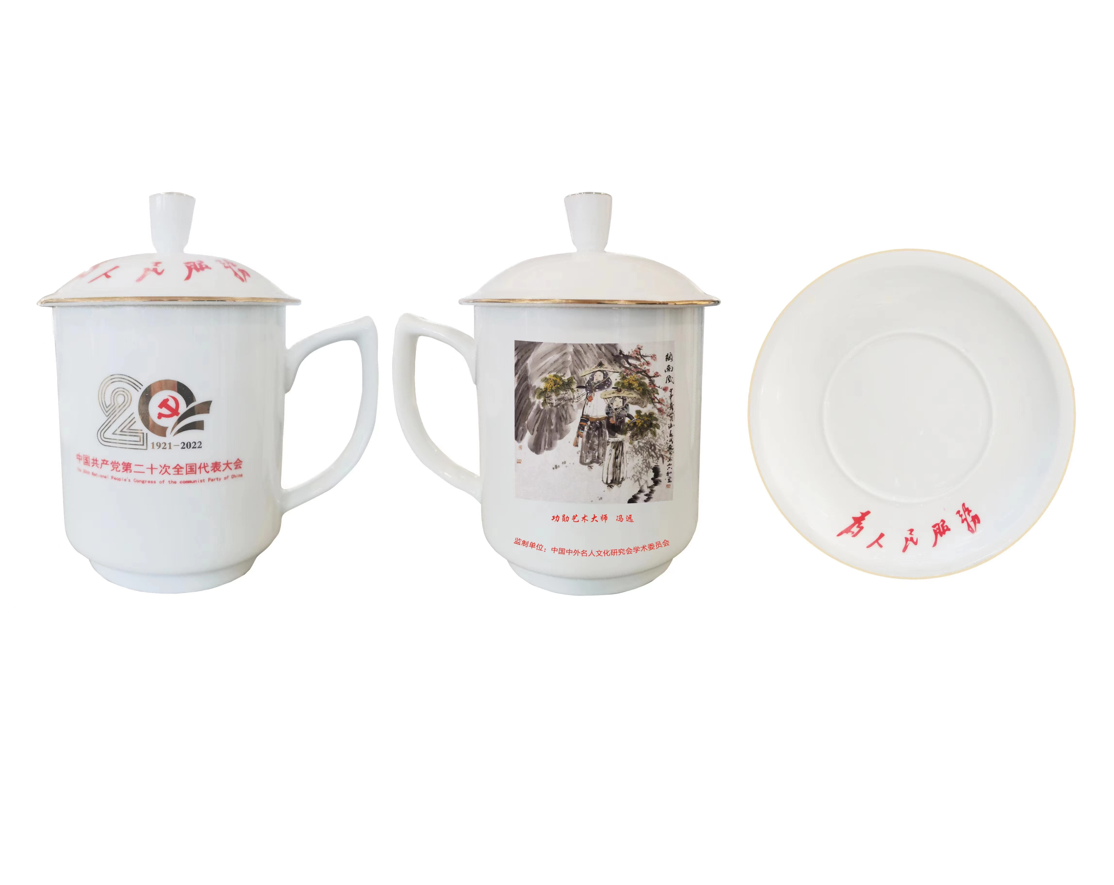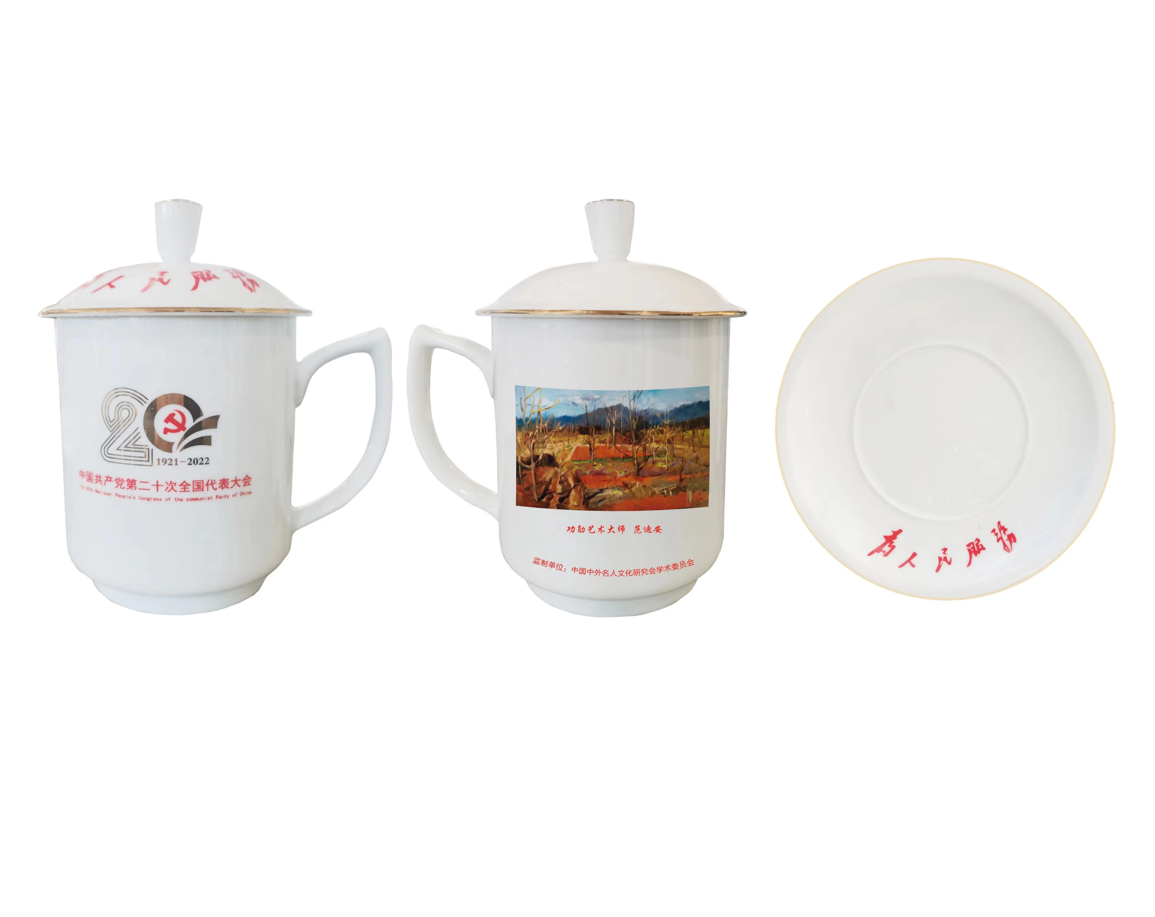 值此中国共产党第二十次全国代表大会开幕之际,中国中外名人文化研究会将表彰一批为书画艺术的传承和发展做出特殊贡献的艺术家,将其经典作品制作在大会专用景德镇三才办公杯上,携率众艺术名家向二十大献礼!