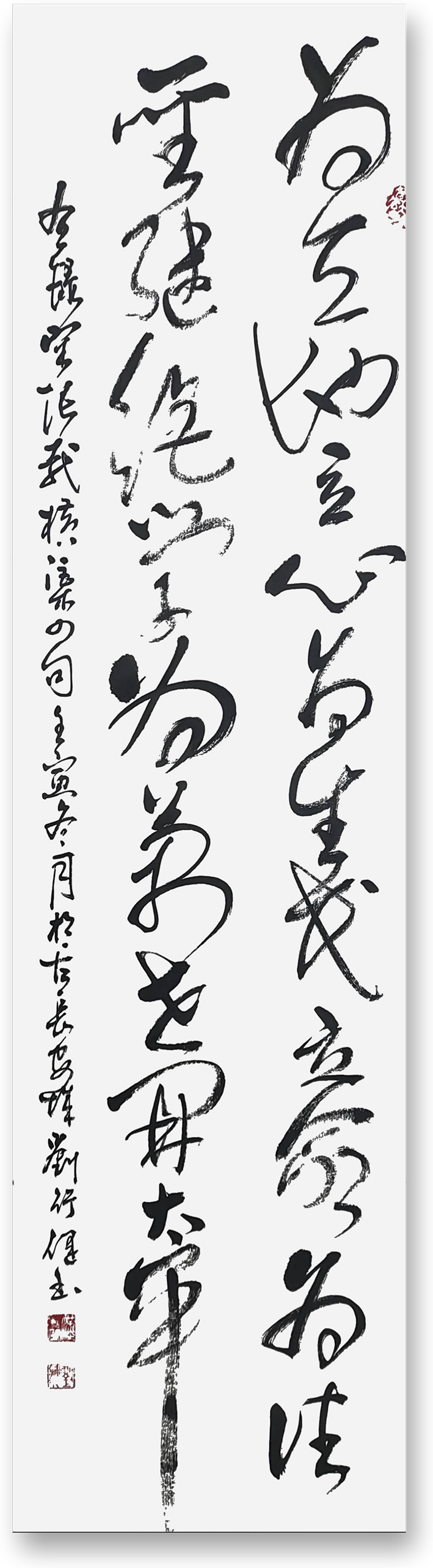 四十多个春秋,坚守传统文化书画阵营,临池不辍,以至酷爱而废寝忘食,师拜千家,与天为徒,与古为徒,历尽艰辛,终悟道法自然。书法尤善摩崖榜书、楷行草隶篆五体涉猎、其书深研汉魏晋诸体,容百家书格为一炉,书体苍劲有力、优雅飘逸、个性鲜明,书画界“狂草”前端人物。国画擅长山水,兼容人物、花鸟,以丰富的生活经历和遒劲的书法功力倾注作品,使得绘画作品妙趣横生。做人豁达开朗、低调朴实。轻视荣誉,谦恭致学,虚怀若竹。现任中国书法艺术博物馆书法研究员、中美协陕西会员,汉唐文化艺术创意研究院理事,北方摩崖石刻书法研究者、刘体书法创始人以及美国纽约文化艺术交易中心签约书画家,赴西北贫困地方传统文化传播书画家,中国先圣传奇动漫片总编等多种职务。信念:意志坚定,积极进取,以承扬中国优秀传统文化为己任,坚持艺术天下思想宗旨,争取为世界文化艺术共同发展做出贡献。