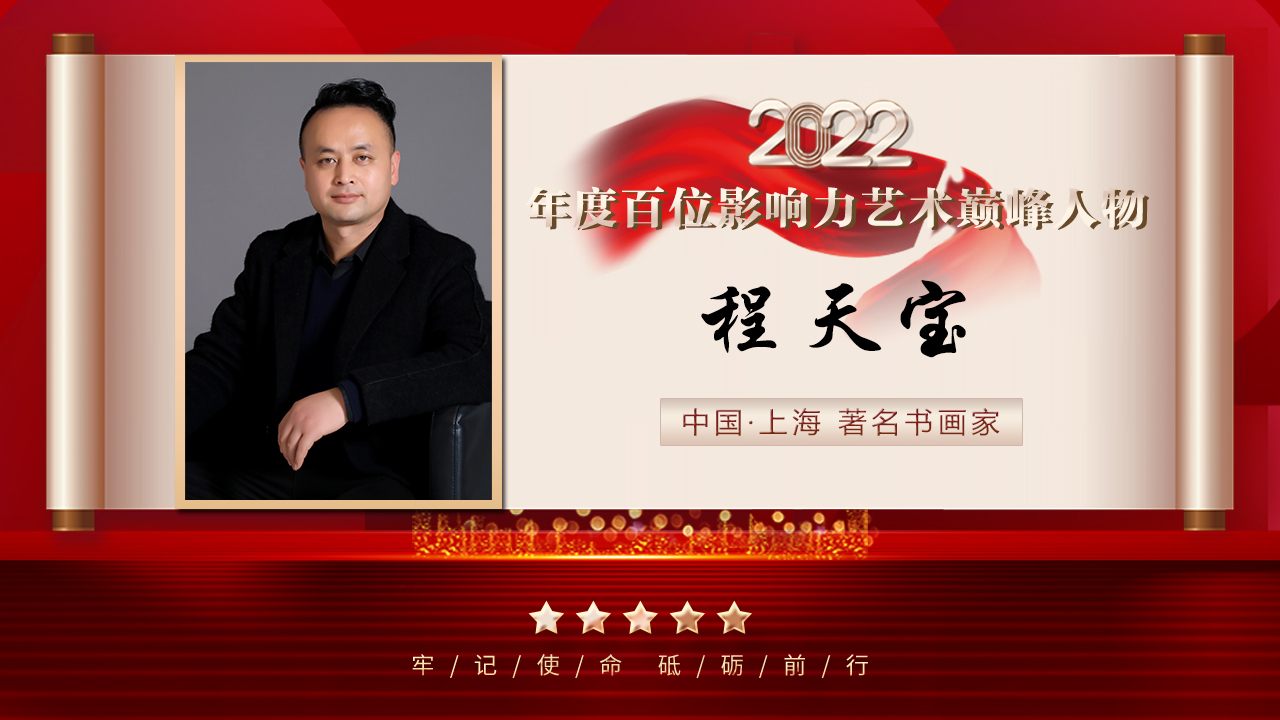 程天宝是一位书画的多面手,国画山水、人物、花鸟无一不能,书法无一不精,笔墨功力深厚,作为修养全面的书画家,尊重传统又紧贴时代发展脉搏,书画作品曾多次在国际、全国、市级美展中获奖,并多次在中国美术馆,香港中文大学艺术馆等上海美术馆展出和收藏。多幅作品代表中国送往澳大利亚、荷兰、加拿大、俄罗斯、日本、美国、新加坡、韩国、法国等国家展出并获大奖。曾获第三届“中国梦想杯”书画大赛金奖,首届毛泽东诗词作品展金奖,“血铸丰碑”纪念中国人民抗日战争暨世界反法西斯战争胜利70周年,全国书画名家作品大赛金奖,全国第十五届“庐山杯”书画大赛金奖,东方红庆祝中国共产党成立95周年全国书画名家作品大赛金奖,2020年获“艺巡中华·美丽中国杯”书画大赛美术组金奖。并授予中国梦优秀艺术家,中国红色书法艺术家,中国百强书画名家等荣誉称号。被国内外书画爱好者企业家所收藏。