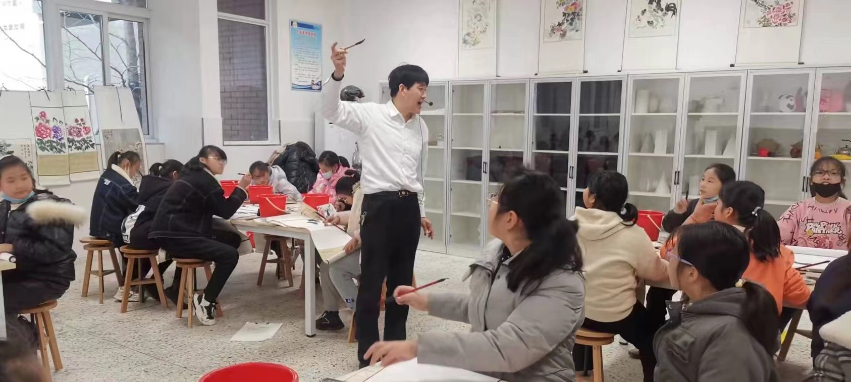 传承民族文化是我一生的信念,在国画教学道路上,我坚持求学教学,做到知之为知之,不知为不知,知而授之。奉行良心教学,多年来,不少学生带着作品已走出国门,参与世界文化交流,看到文化得以传承,看到学生们的画展,看到学生义卖作品,救助他人感到欣慰,也更加坚定了我做合格老师的决心,然而,本人知识浅薄,不足之处,愿更多的老师给予指正,批评。以便今后更好地教学,更好地将文化传播!