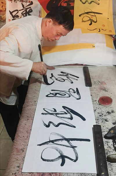 陈永平老师对书法的挚爱,实可谓书家才情之表达,自然灵通,筋脉洒落,雄浑朴茂,用笔严整挺劲,神韵超逸注意到了轻重、浓淡、虚实,疏密,大小的关系依存,这种浑然天成的艺术美感,让人无不感慨,艺术之无限,乐在其中,便是人生一大乐趣。陈永平先生勤勤恳恳做事,本本分分做人。正如古人论书云:一须人品高,二须师法古,是书之法,学者习之,故当熟之于手,必先修诸德以熟之于身。德而熟之于身,书之于手,如是而为书焉。