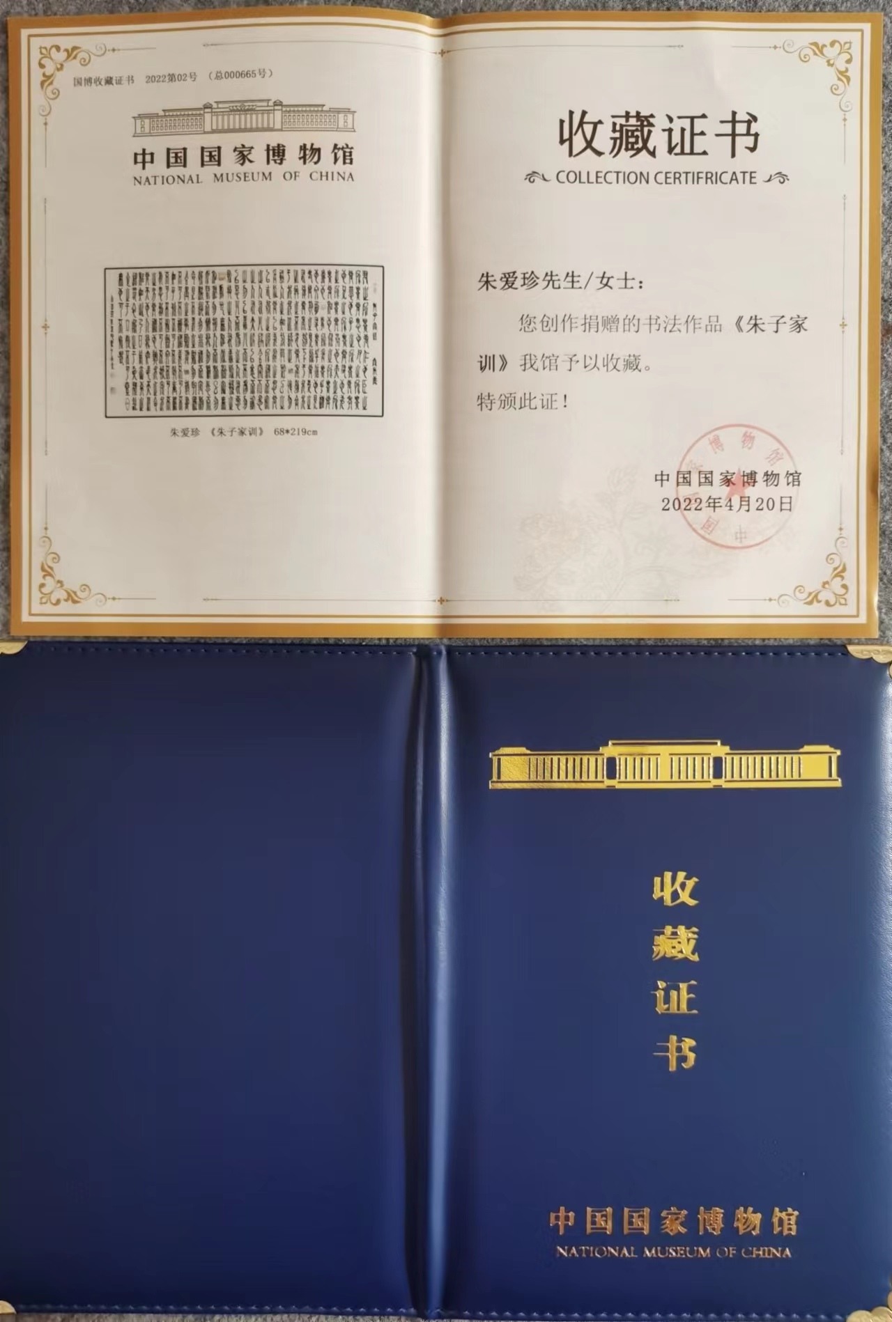2022年5月,自创篆体《朱子家训》作品,被国家博物馆收藏!
