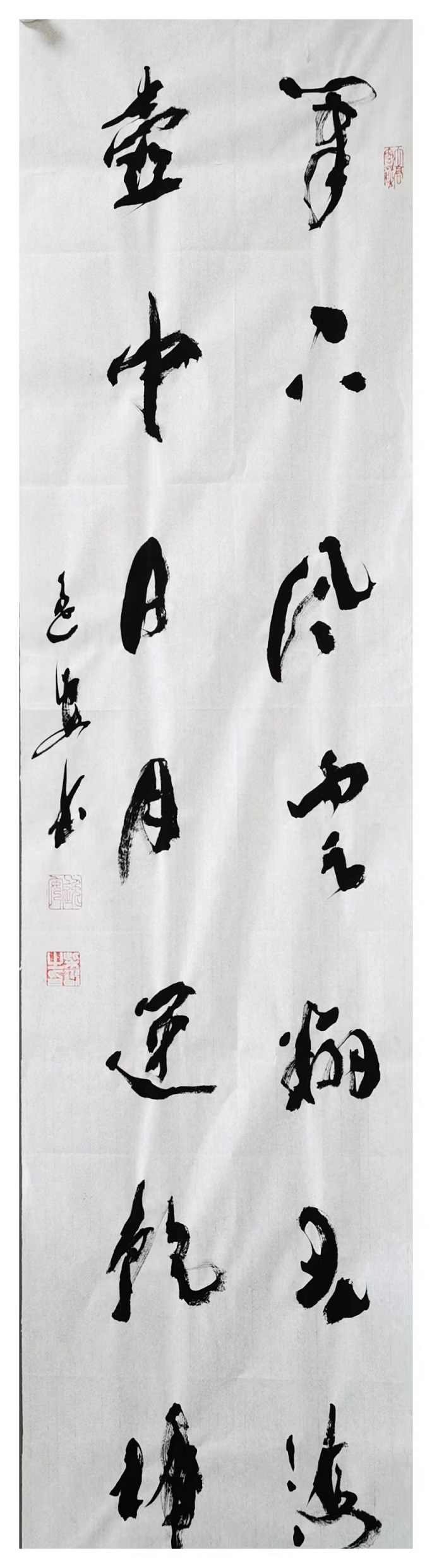 柴戬先生在艺术创作上,追求书法大家的神骨弥坚,神采涣然,神韵畅溢,神气贯通。逐渐形成了大气磅礴,豪发酣畅,龙蛇飞舞,狂放洒脱的书法艺术风格。