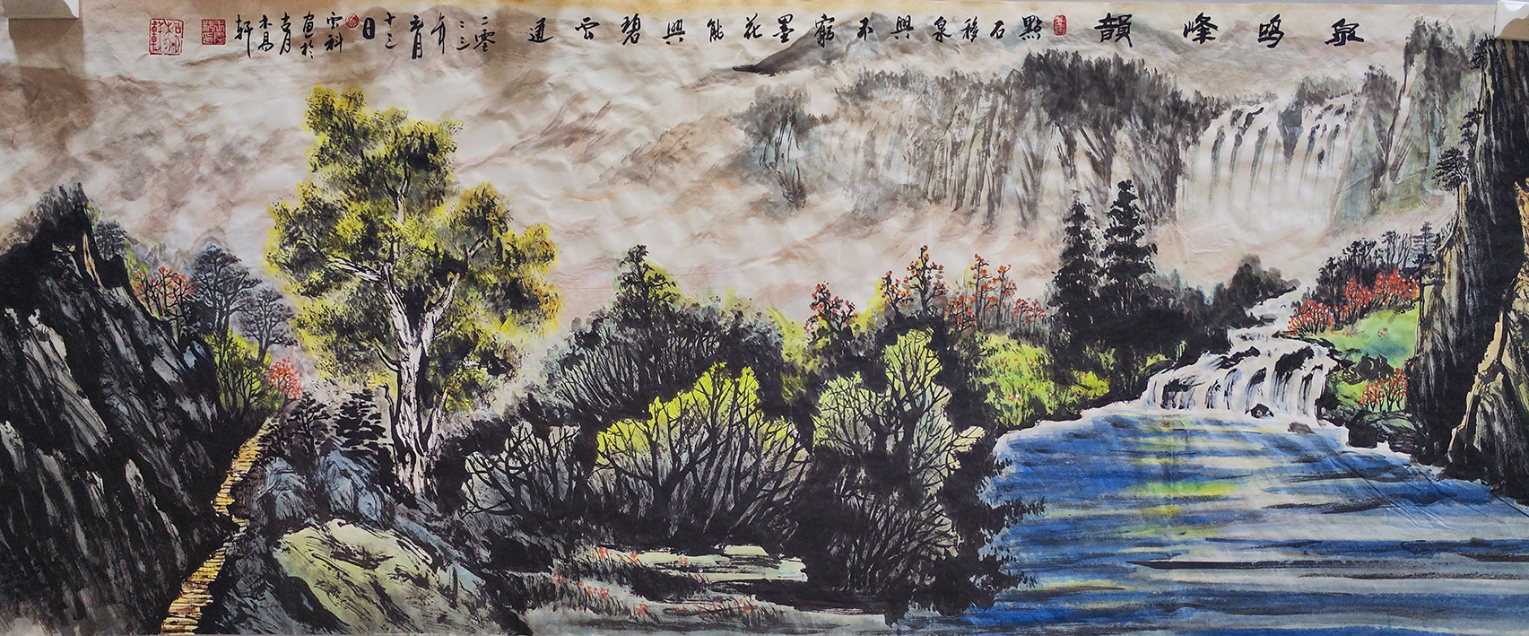 作品1:名称:《泉呜峰韵》180cmX70cm生宣纸,创作时间2123年1月13日
