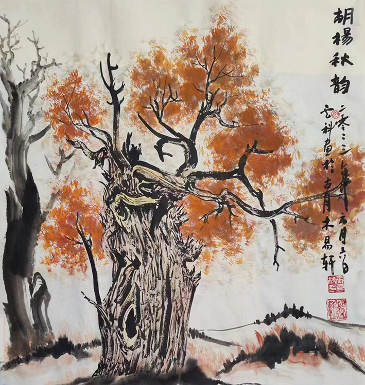 作品3:名称《胡杨秋韵》70cmX70cm生宣纸,创作于2023年1月6日