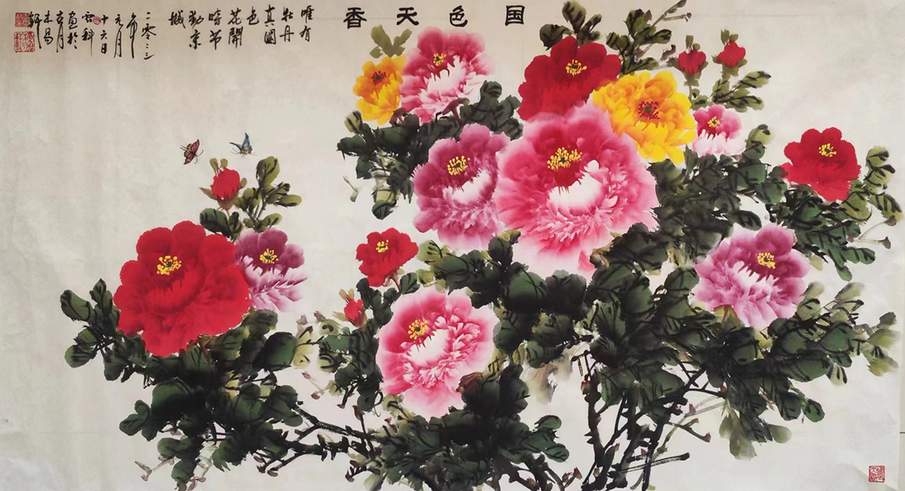 作品4:巜国色天色》180cmⅹ95cm生加宣纸,创作于2023年1月16日