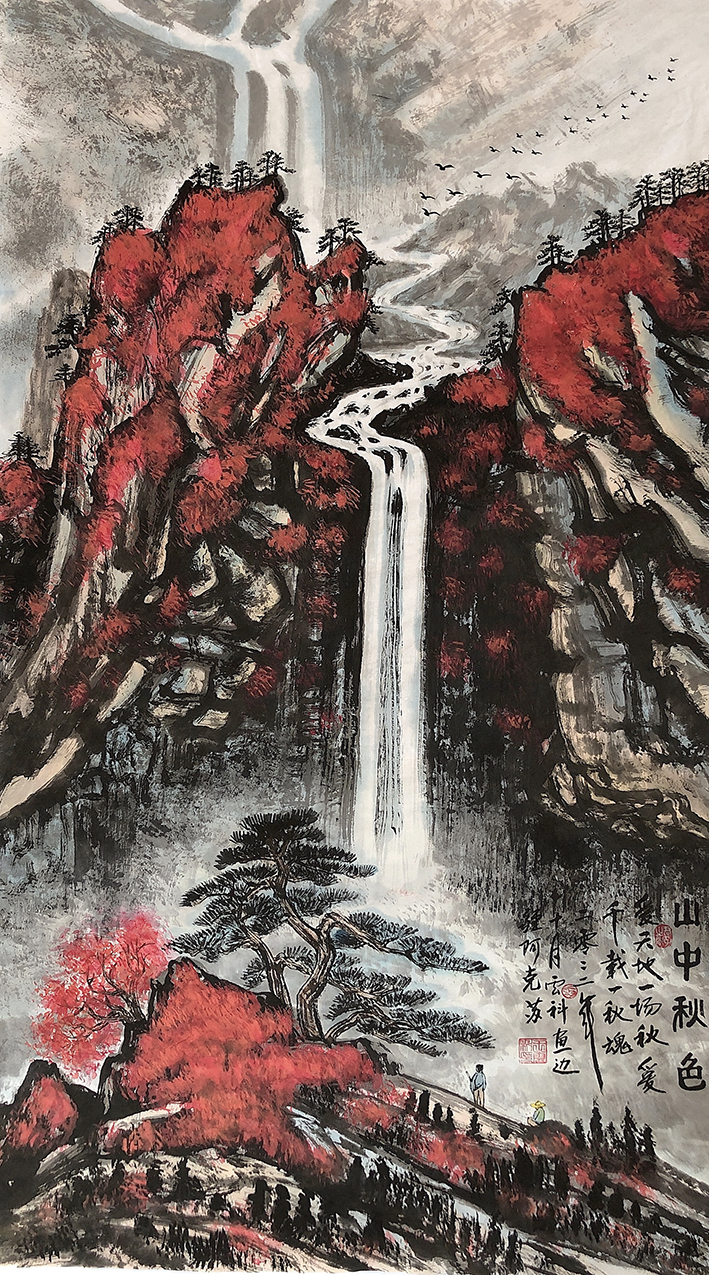作品7:《山中秋色》138cmx70生宣纸,创作于2022年10月。