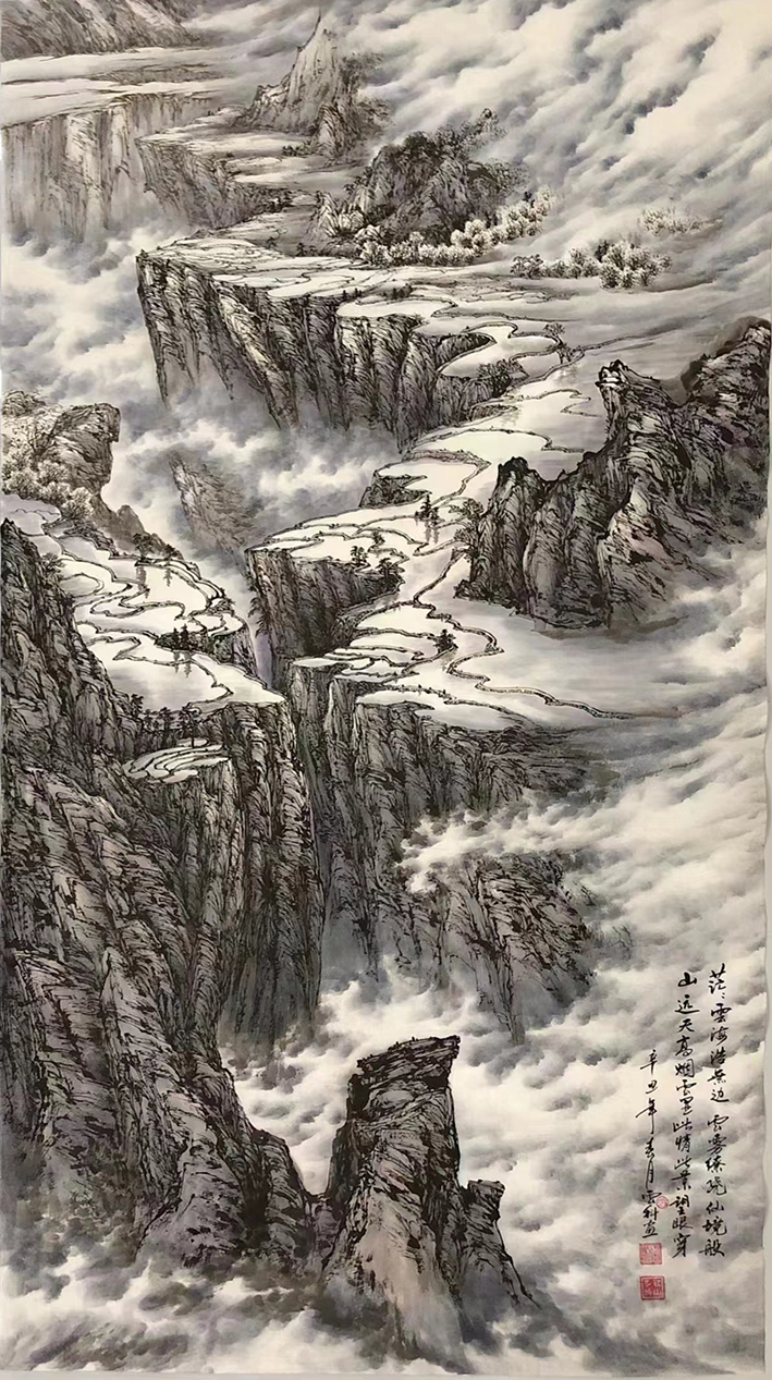作品9:《 茫茫雲海》220cmX126cm加厚生宣纸竖幅,创作于2021年3月。