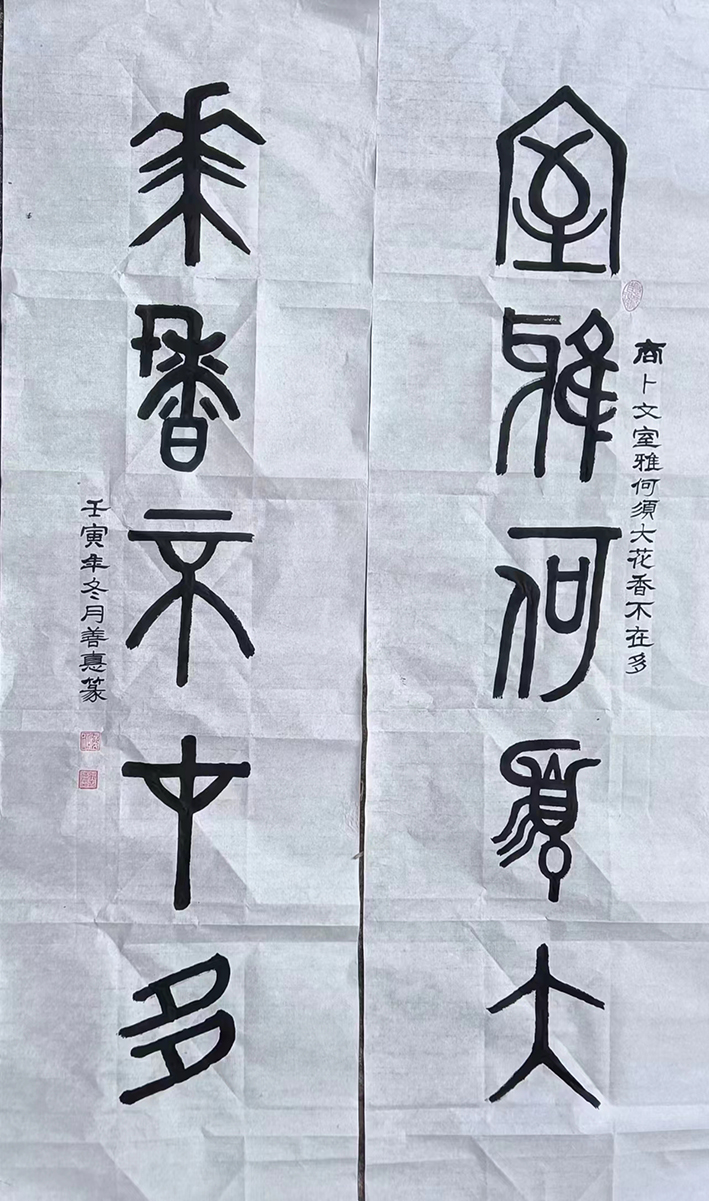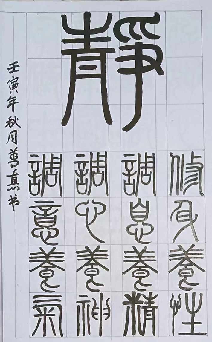 自练篆书多年,曾临写和钻研多位篆书名家字帖和有关篆书著作。作品多次参加全国各级书画竞赛和书画展,分别获金、银、铜奖,并入编《首届中外烟酒茶九寨沟杯书画大赛暨获奖作品展专集》、《中国书法家作品选集》、《首届“羲之奖”全国书法篆刻大赛作品集》、《中国书画藏典》(作品由中国收藏家协会收藏)、《中华当代书画作品博览》、《中国当代书画艺术家收藏大典》、《百世流芳一纪念岳飞诞辰901周年全国书画剪纸大赛作品集》、《夕阳红一一中国老年书法作品选集》、《纪念邓小平诞辰100周年、中华当代书画艺木精品荟萃》和《当代中国实力派书画家作品集》、《中国当代书画名家名作选萃》、《当代杰出书画艺术家新作博览》、《当代名人书法作品集》等十多部作品集。