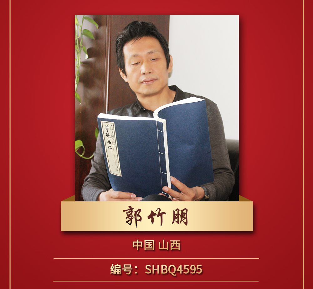 郭竹朋,男,1963 年 10 月出生。中央党校马克思主义哲学研究生,1982 年参加工作,现任山西省文水县人大常委会副主任。自幼学习书法,行、草、隶、篆均有一定基础。1997 年任刘 胡 兰纪念馆馆长期间,与山西省书法家协会成功举办全国纪念刘胡兰英勇就义 50 周年书画展览。