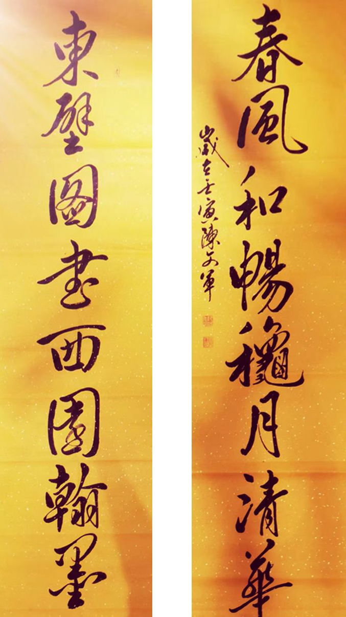 陈文军,湖北省宜昌市人!现任楚商联合会常务理事,宜昌市天门商会副会长。国家一级美术师,三峡书画院执行院长,湖北汤真文化传媒公司董事长!中国羲之文化书法专业研究员!中华国礼专供艺术家!其作品多家媒体专题报导。1992年入中国书法协会。荣获国内外多次大奖!师从北京画院王文芳大师。受权希军,苏士树,欧阳中石等名家亲自指导!权希军老师曾经点评到陈文军先生书法的艺术魅力不仅仅以艺术欣赏。而且给人精神上的享受。他的作品柔中有刚。秀中见奇,笔爽而有神助。