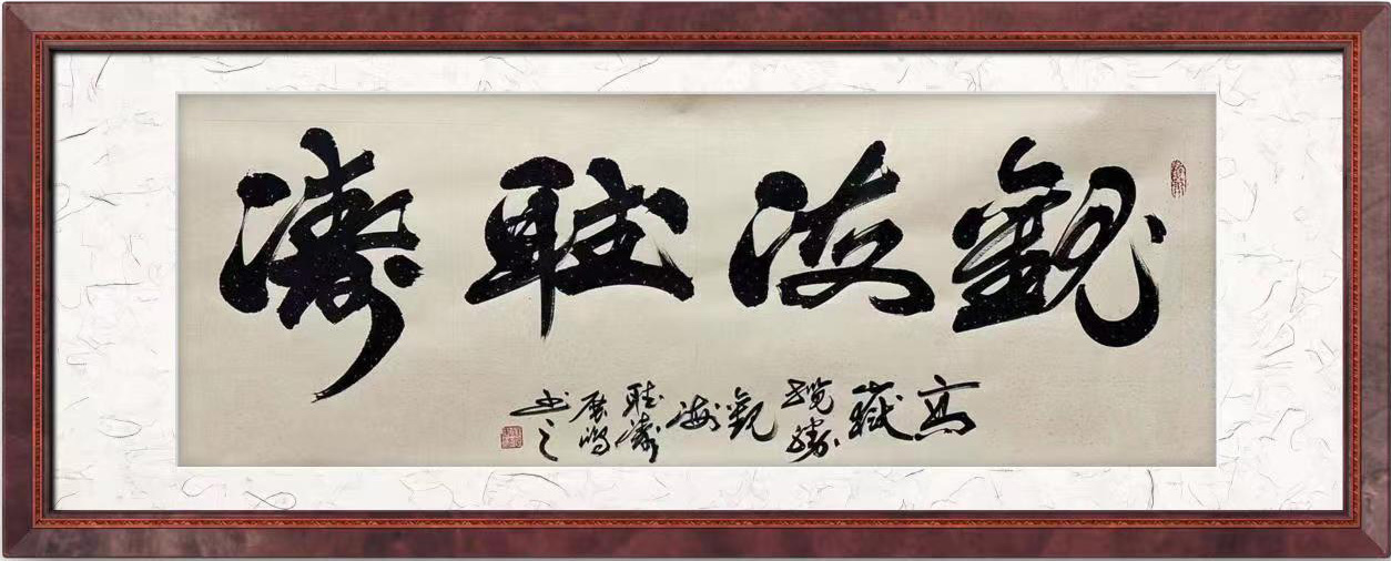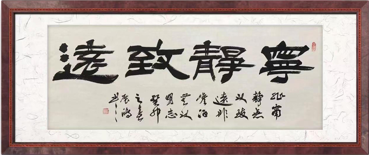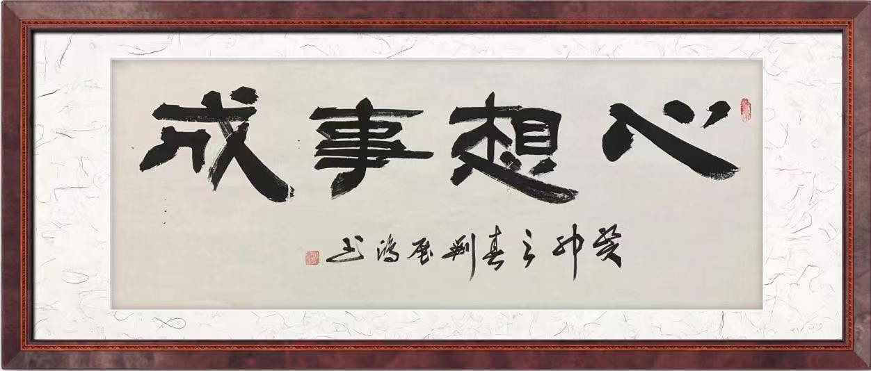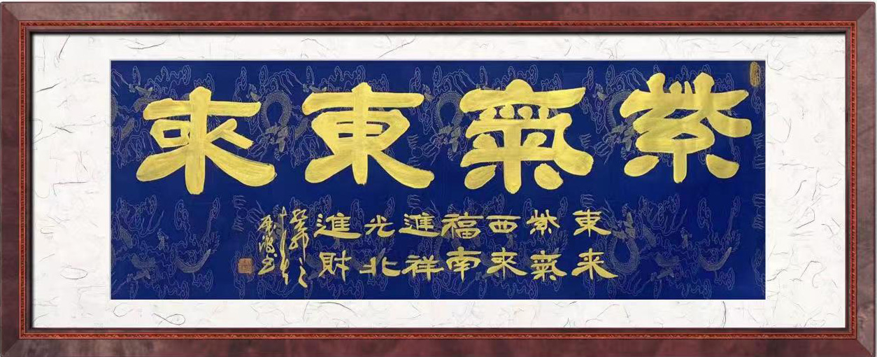 刘展鸿,男,1970年生,中共党员,富平县人,师从榜书大师蔡轩朝先生,悉心领悟,刻苦砥砺,榜书书作大气恢宏,磅磚厚重,如虎震山岳,似龙腾江河,尤以六尺,八尺单字榜书一筆而成闻名遐迩,弛骋书坛。在榜书隶篆上得隶书巨匠刘炳森先生精心教学,并多次向欧阳中石先生等前辈求教,获益匪浅。加入自己对隶书、篆书、行书的理解和感悟,在榜书艺术上走出了自己的路。并且荣获了“艺术杰出贡献奖”。