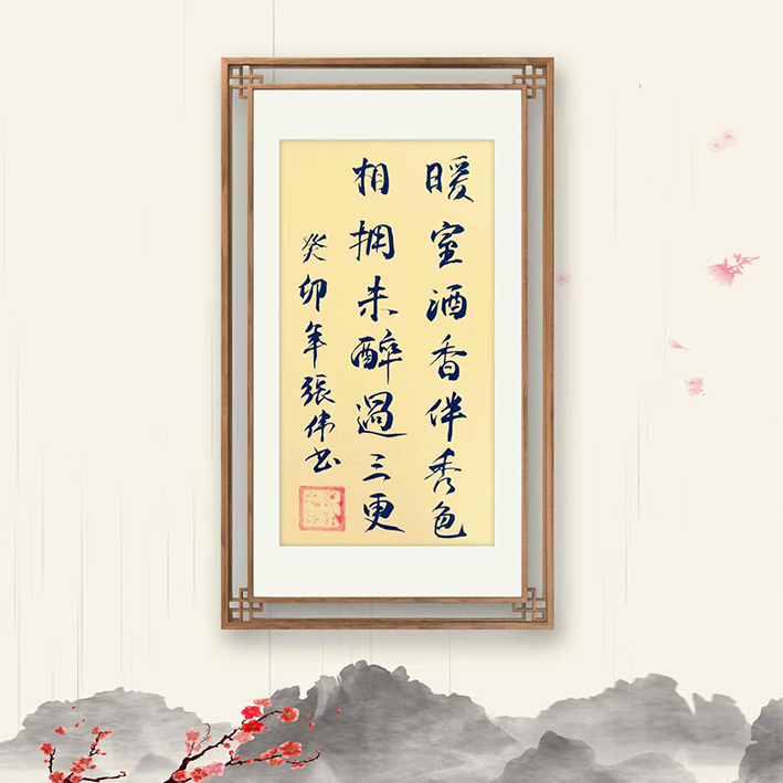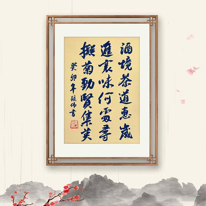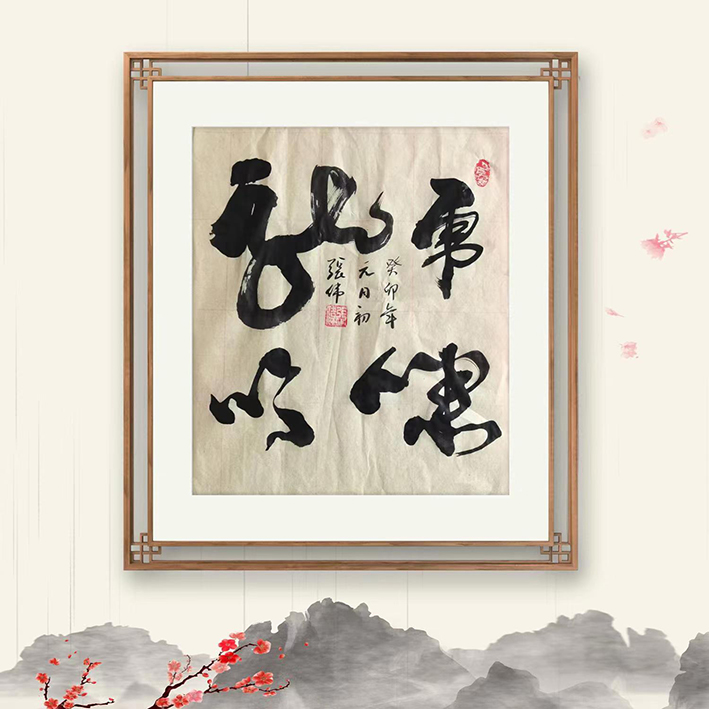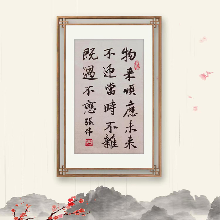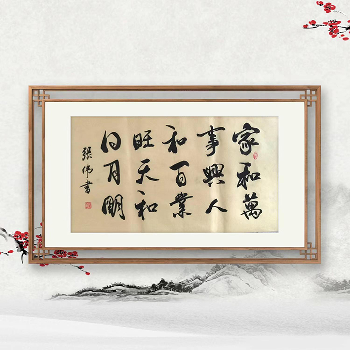 张伟先生的字风:主要以行楷、行草、草书为主,用笔沉稳,章法布局合理,外貌圆润而有力道,文化内涵丰富,磅礴气势,潇洒飘逸,线条优美,笔画之间牵丝映带。