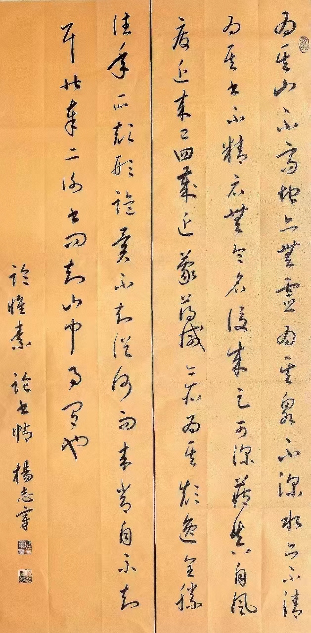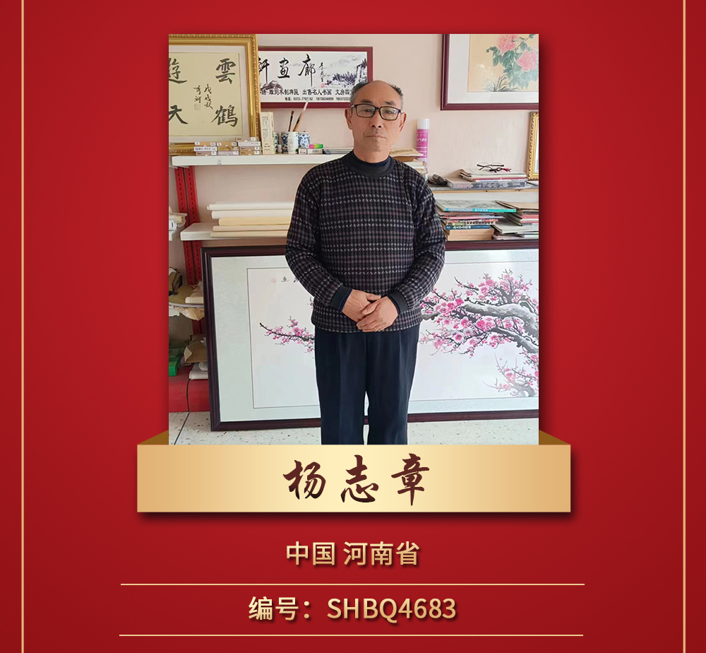 杨志章,字国学,男,汉族,1959 年生,河南省内黄县人,自幼酷爱书法,现为中国老年书画研究会研究员,中国书法家协会会员,安阳市老年书画研究会会员,天津市老年书画研究会会员,中国书画名家画廊特聘书法家。