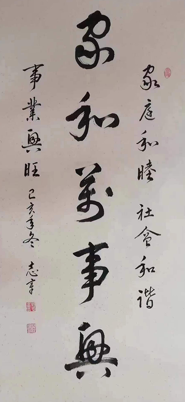 幼时志章受祖爷墨迹的熏陶,从唐楷入手学习书法,20 世纪80年代,在书法家刘红旗老师的指导下,主要临习二王(王羲之、王献之)行书名帖、名碑,在中国书法家协会高研班进修期间,师从于孙其峰大师,透过字内功和字外功的融洽结合,领悟到古人书法的神韵最后形成“从容而立,豪迈奔放,挥洒自如,迟涩飞动”的自我特色与风格,其作品曾在全国省市的书法大展中多次入选并获奖,作品被国内外友人和众多文博机构收藏,入编《中国书画名家名作典藏》《中山颂诗书画集》《华人精英人才大典》等多种书画集,并被《中国书法导报》《书画专刊《书法报》等报刊选登2014第二届庆中秋、迎国庆“墨缘宝”杯全国书画大展赛中,荣获金奖,并授予“当代卓越书画艺术家”。被文化部艺术人才中心授予“中国杰出人民艺术家”荣誉称号,并授予“中国当代实力派书法家”资格称号。
