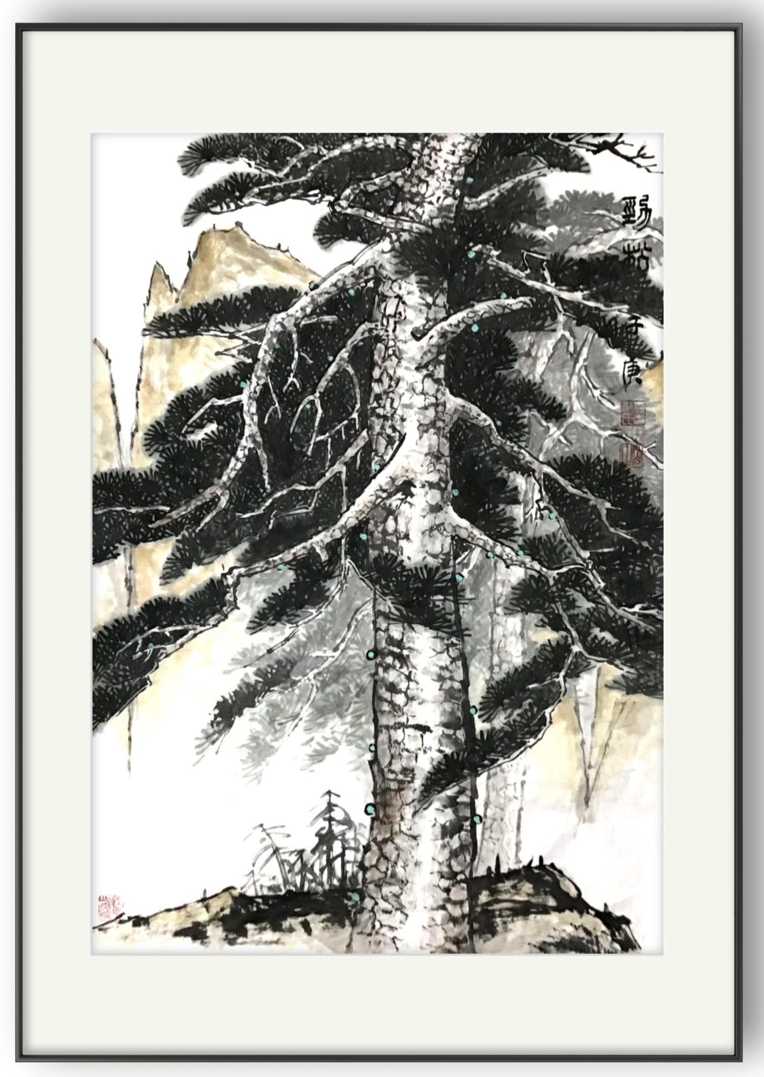 青松劲石,旷逸畅神。凭借着传统的笔墨功底和文人修养,郭岗生先生是有真正做到了写意山水的创作大成!师古造化而不拘泥,即是可见其承古继今的传承法道,深入自然而不媚俗,亦是可感其脱离窠臼的清醒认知,不同矫饰之流,更不同造作之辈,而是始终有保持着极高的艺术准则和参悟精神!因此经由郭岗生先生所创作的这些山水丹青画作,就不能是再以简单的黑白笔墨来统一概括,而应当是一种可以托物言志和托物寄情的全面修养体现!既有雅俗共赏的艺术品质,又有长期积淀的文化结晶,气象自成,意义非凡!