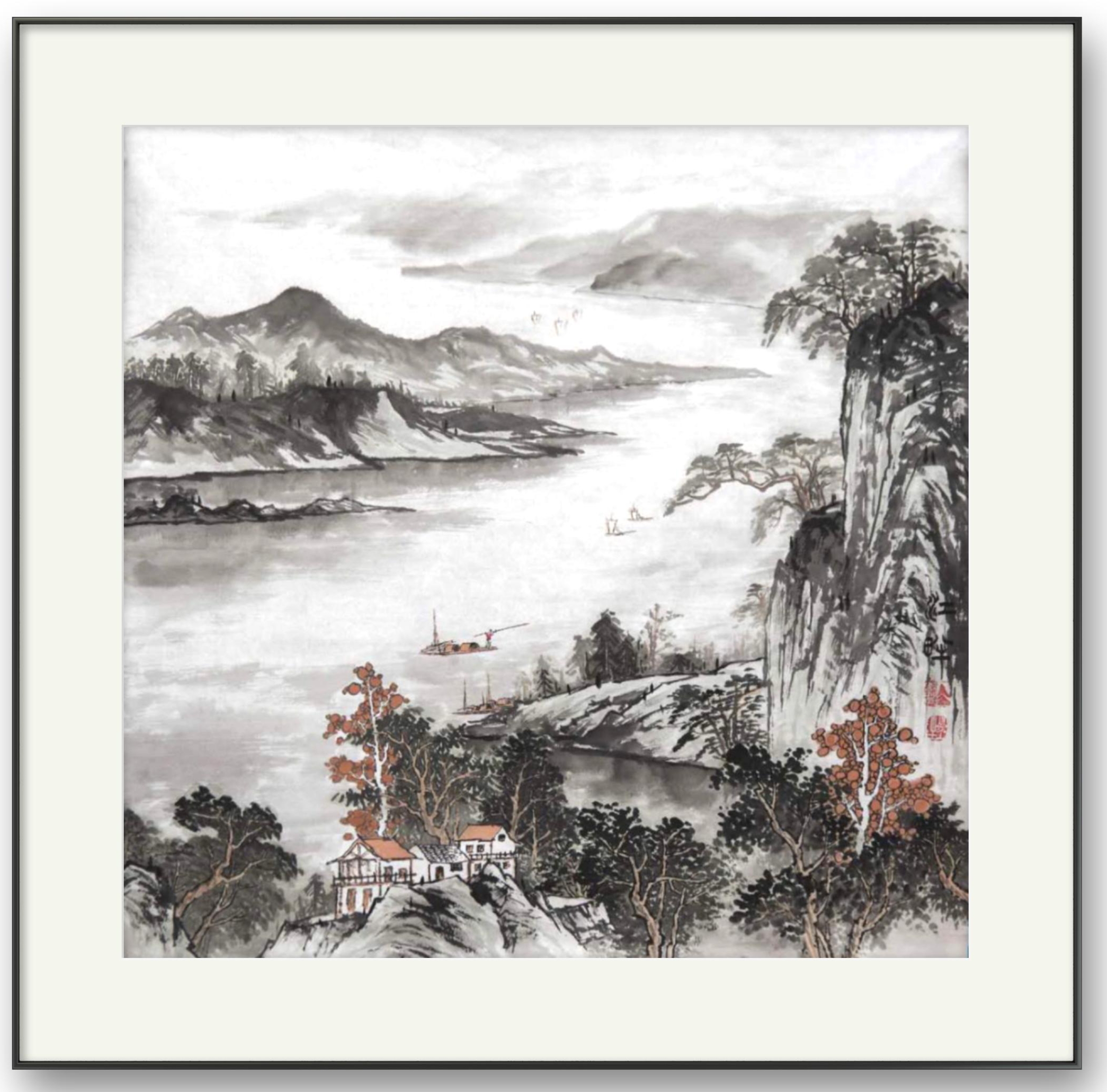 相比于大部分只会生搬硬照的同行写意画家,郭岗生先生的写意表现则是能够更加敏锐的去呈现一种画外之意,即是在笔墨中观道,更在笔墨中味象!而他本人之所以能够达到如此高的写意境界,一方面是因为他对于览物所得的写生情怀,另一方面,也是最为重要的一点,那便就是他那独特的心迹抒发和寄情感受!正如先贤所言那般,是谓外师造化而又中得于心源,今郭岗生先生的写意山水画作显然也就是有充分贯彻于此妙道!笔墨心迹天人合一,力避摹仿之俗化,以笔墨为根本,以山水为寄托,载道精神,可以明鉴!