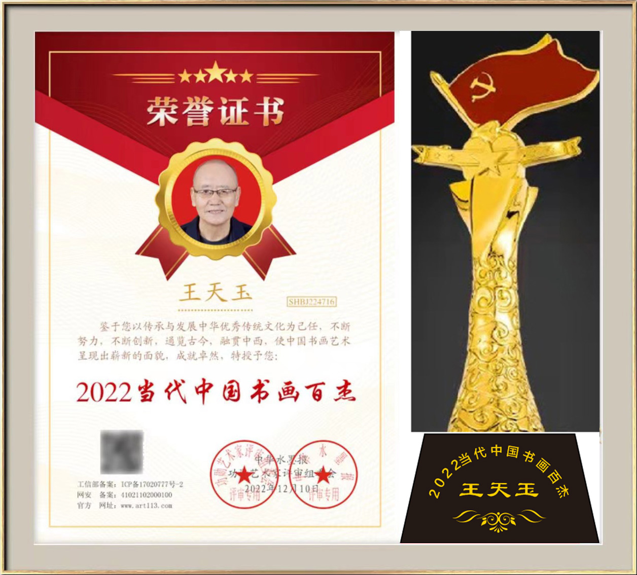 2022年,被功勋艺术家评审组委会和中华水墨报联合授予“2022当代中国书画百杰”荣誉称号。