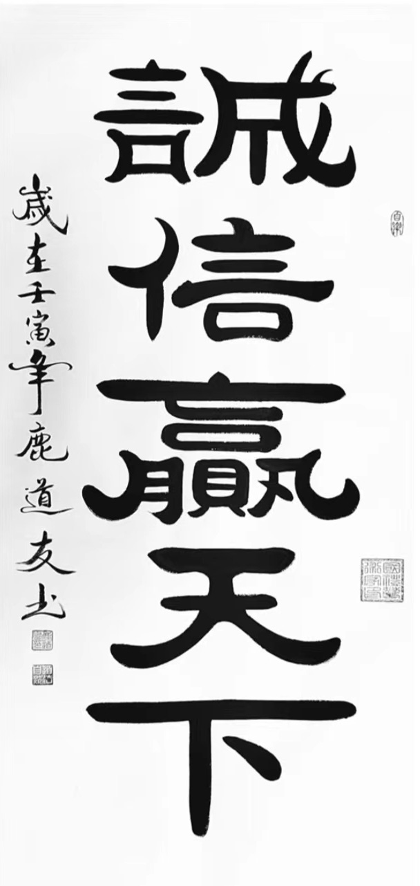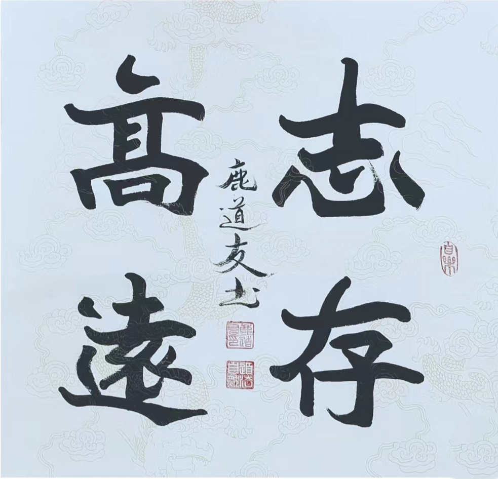 精研碑帖弘扬书道,丰姿多神独树一帜。鹿道友先生用碑帖功夫传承书法古风,楷书写得法度精研,无可挑剔。隶书写得左掠右挑蚕头燕尾,魏碑完具二十美,亦是深厚的碑帖功夫。行草飘风骤雨惊竦竦,落花飞雪何茫茫。他的笔墨沉醉在书肇于自然的情景里,带着弘扬文化的姿态,作出了惊艳世界的挥洒。件件书法作品皆是收藏的和璧随珠,这正好与大国崛起文化复兴的时代背景互为镜像,其书其事入册书史,春秋相传!