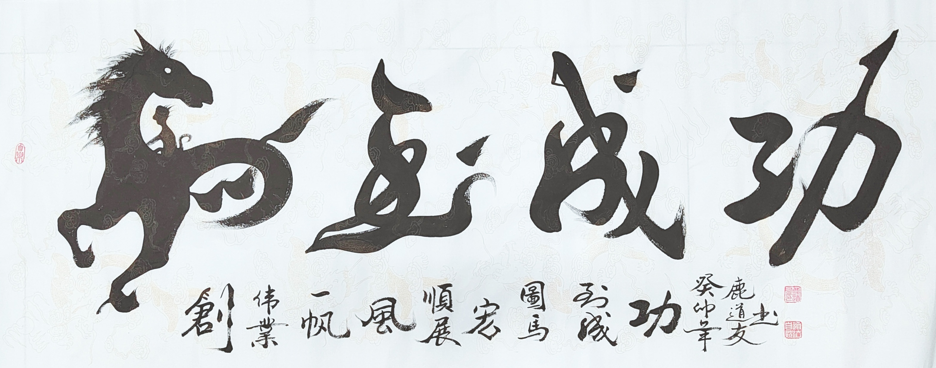 书法家鹿道友先生的翰墨修养大著其名,拥有相当卓越的文化影响力。这种影响力从一段书坛佳话可以看到端倪。2019年时任中书协主席的苏士澍先生,有缘与鹿道友先生共同出版一套书画专集。面对两位书画大家的书画稿,中国文化书画协会的领导专家欣然称赞:像鹿道友先生这样楷草隶篆行魏碑鸟体字、艺术字都写,山水,花鸟,人物都画并达到如此优质的水准,实属当今位数不多的书画艺术家!一言而中的,怀有传承与创新双重才华的鹿道友先生,正是当代中国书画美学的中流砥柱。走进他艺术大世界,可以体察书画渊妙代不绝人的审美风采。暂不论鹿道友先生的丹青成就,不妨专览他的翰墨奇观!
