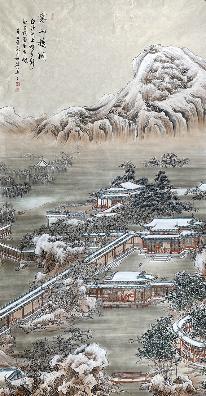 吴世珺师从何家英先生,毕业于天津美术学院,早期作品主要从张择端《清明上河图》中吸取灵感,后期师从国画大 师范扬先生,逐渐对人物,山水有了自己独特的创作方式,形成自己独特的届画山水风格,开创一代新的山水创作门派。