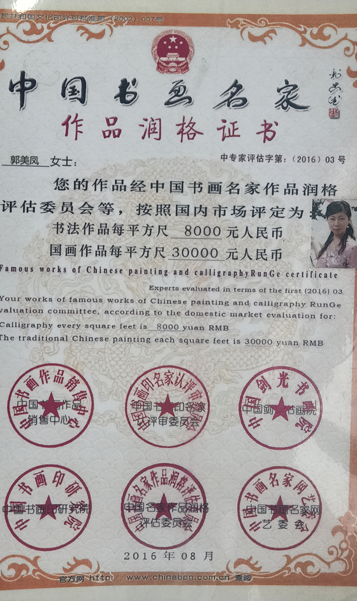 郭美凤,女,斋号梧桐居,1966年生于河南,现居北京,师从齐白石幼子齐良末,现为中国国画院河南分院理事、“中国书画名人榜”榜上画家、中国东方名家书画院高级顾问、河南省炎黄文化研究会理事、华人联合会委员,中国书画家协会会员、中国书画摄影家协会理事、和谐法制书画院副院长、中国文艺家艺术研究院协会会员、河南省美术家协会会员、国家一级美术师。