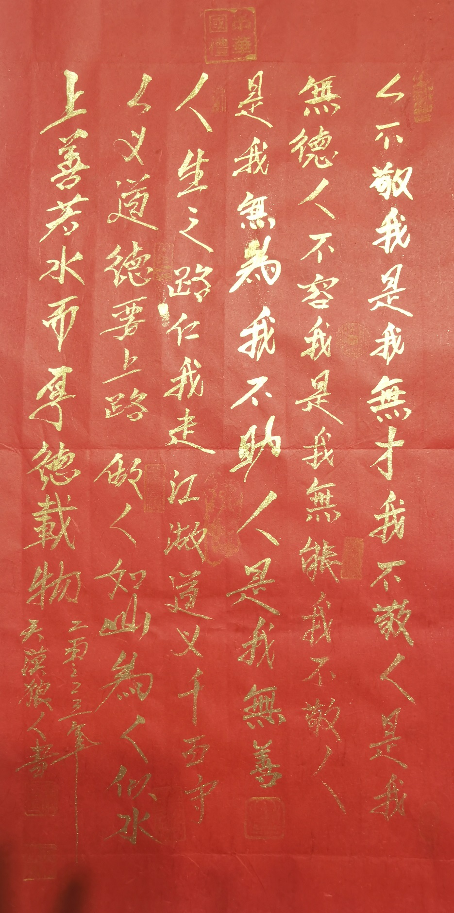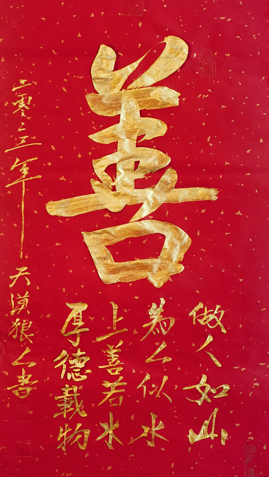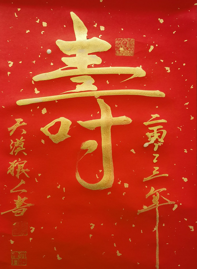 2021年1月百花迎春全国书画大赛中,作品《福寿财忍善》荣获大赛金奖。