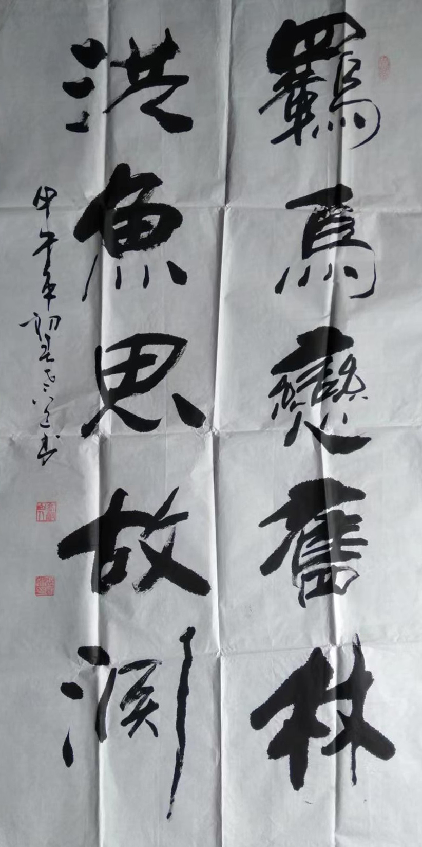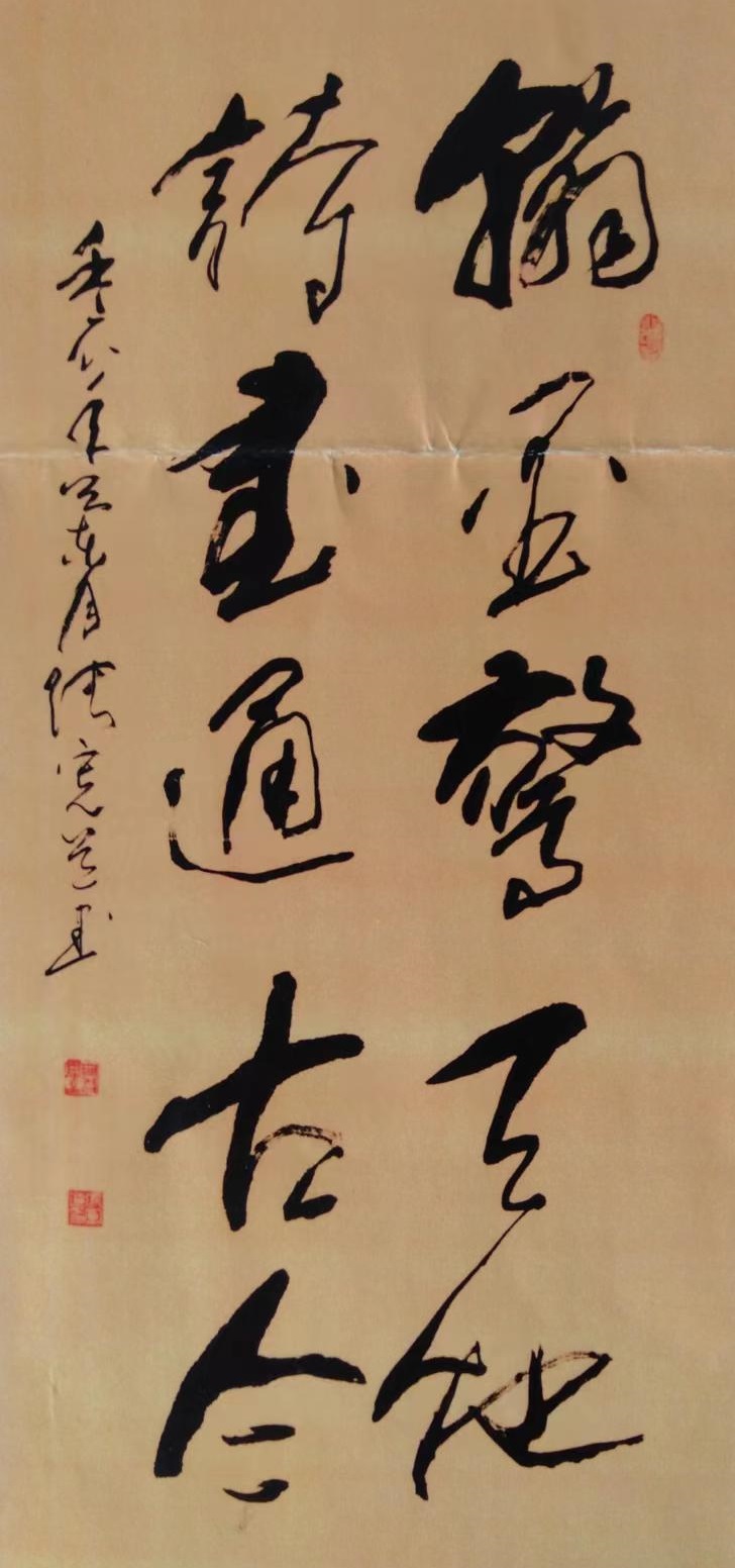 笔墨线条的呈现,必然是要来自于书家的心迹驱使,正所为学术经论,皆由心起,其心不正,所动悉邪。柳公权曰:心正则笔正!而今日的张宽道先生之所以能将书中笔墨挥毫于奇绝,很大原因也就是在于他那抱朴守真的文人格局和精神赋予!一幅作品,虽字字独立,但却又丝毫不失于上下取势的飞逸张弛,故而其众幅行草书法,都是有着以险取胜的章法布局!书作雅俗共赏,意循文人真谛,而此般造诣功底,观之也诚可谓是有独树于一帜也!标榜之作,立意不凡!