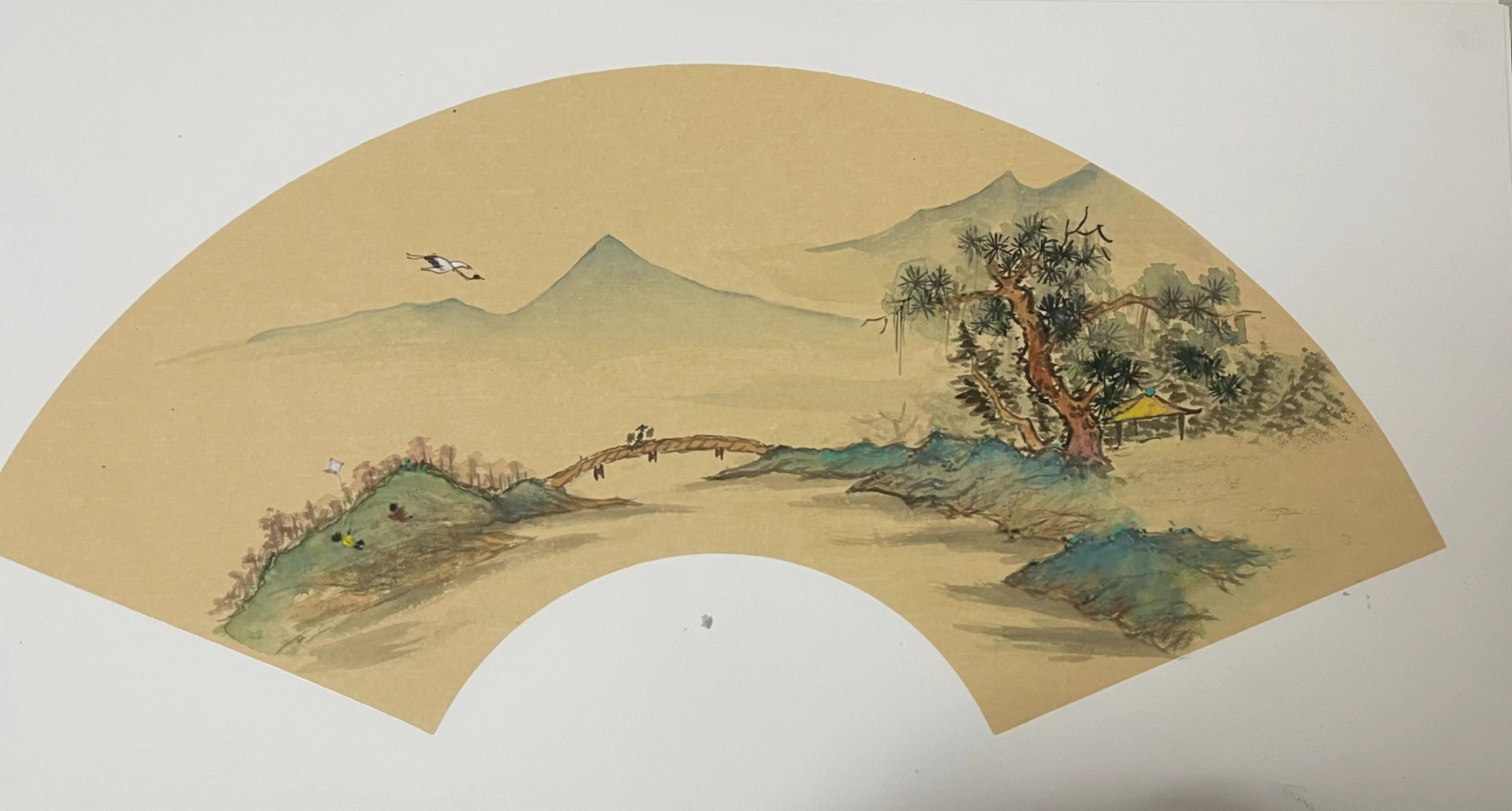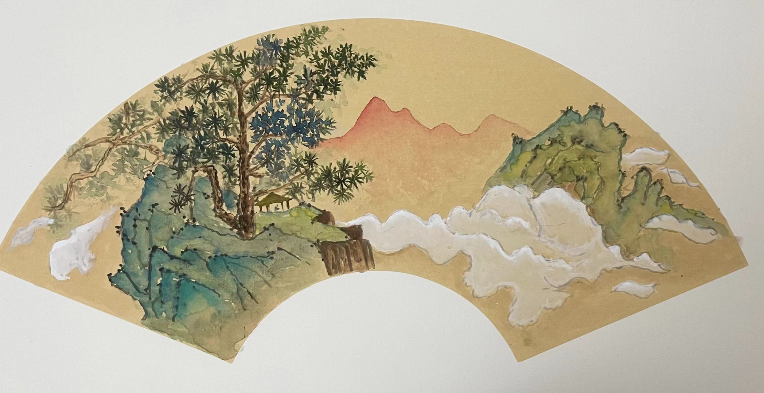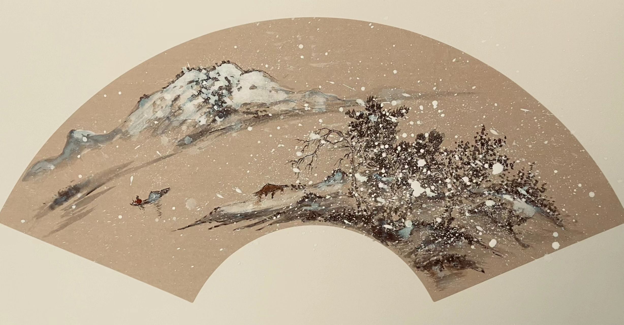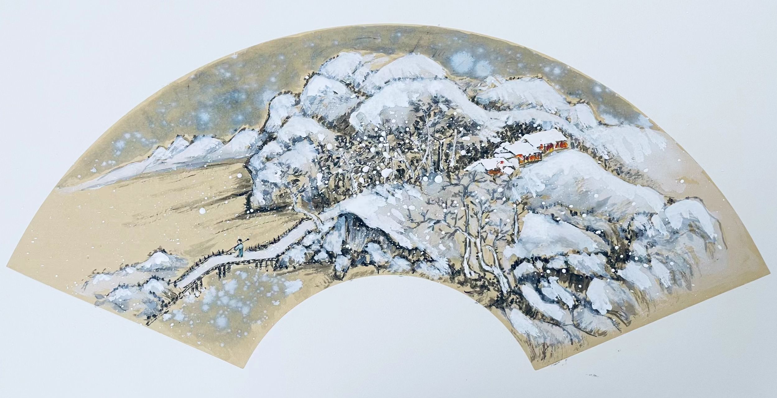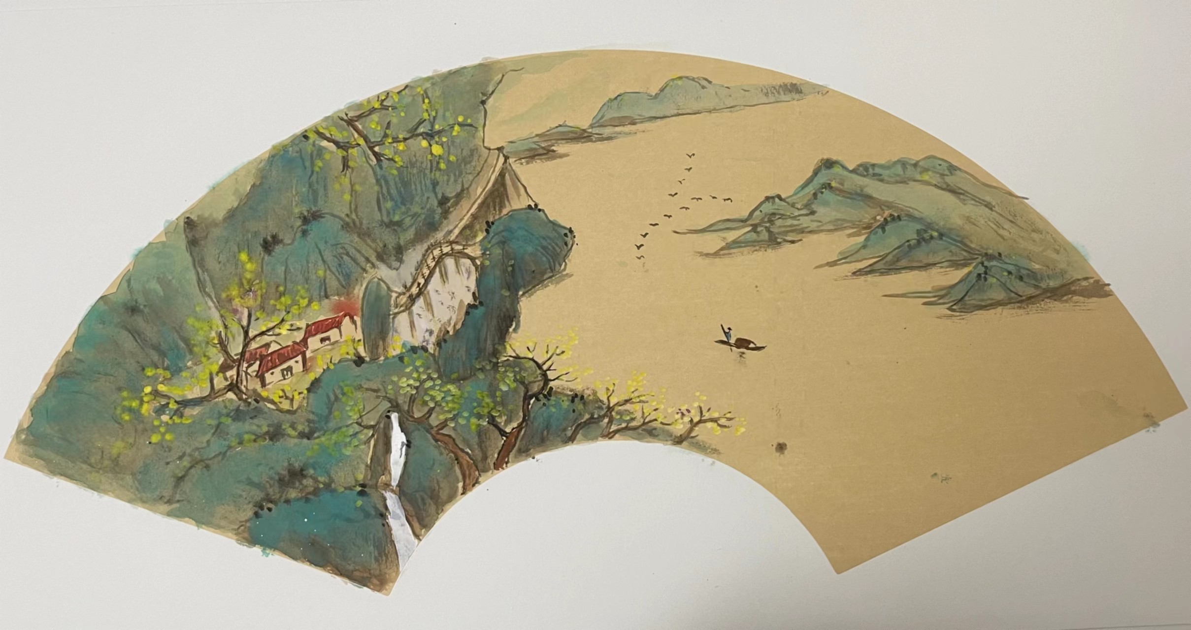 首观李冬霞女士的众幅山水丹青作品,画中山水以扇形画面为呈现,又以小写意基础为本源,笔墨绘之,是有简笔之皴擦,亦有赋色之青绿,前者细腻而不失于澄怀,后者味象而不失于其真,如此一来,就既是有突破了小幅画品的规范性,同时也更是有摆脱了匠俗搬照的生硬性,取而代之的则是一种能够根植于江南水韵的美学境界和意象格调,水墨渍染以成境,墨色交融更抒情!文人品性,尽赋其中,纵览之余,可谓盎然!