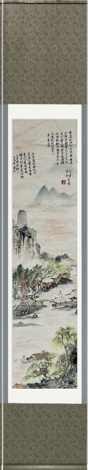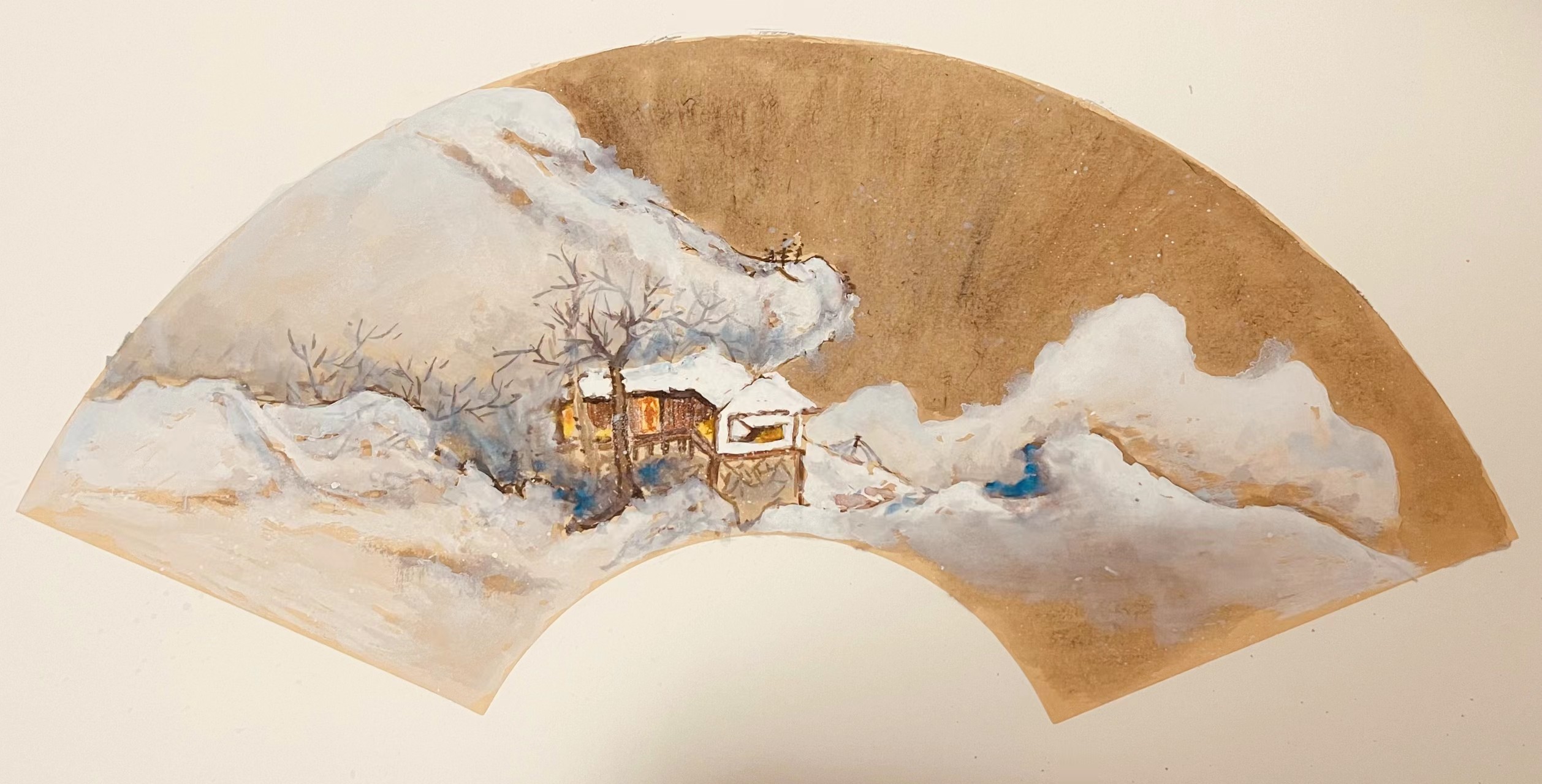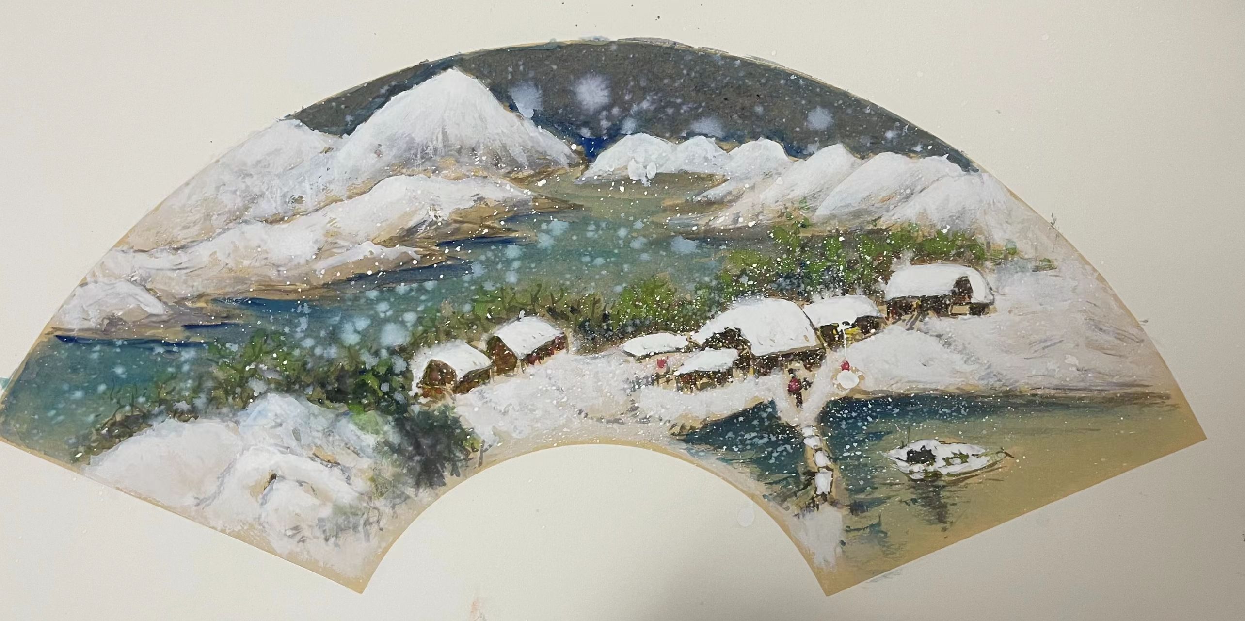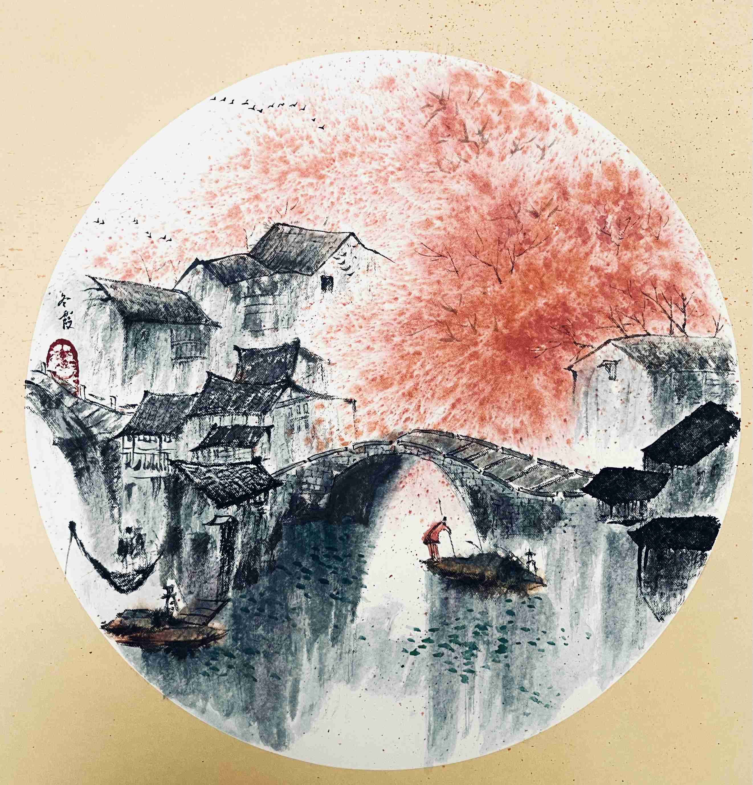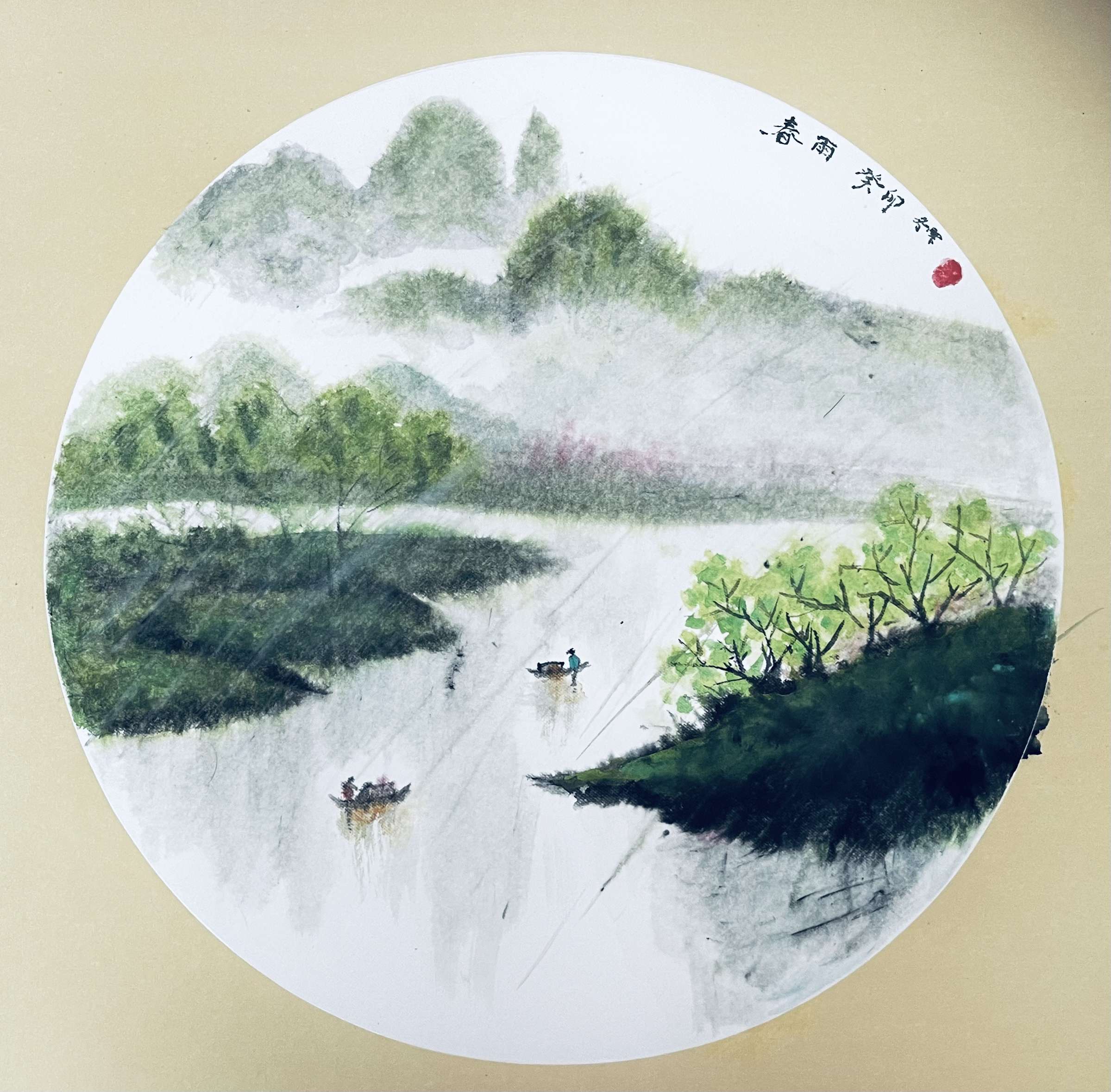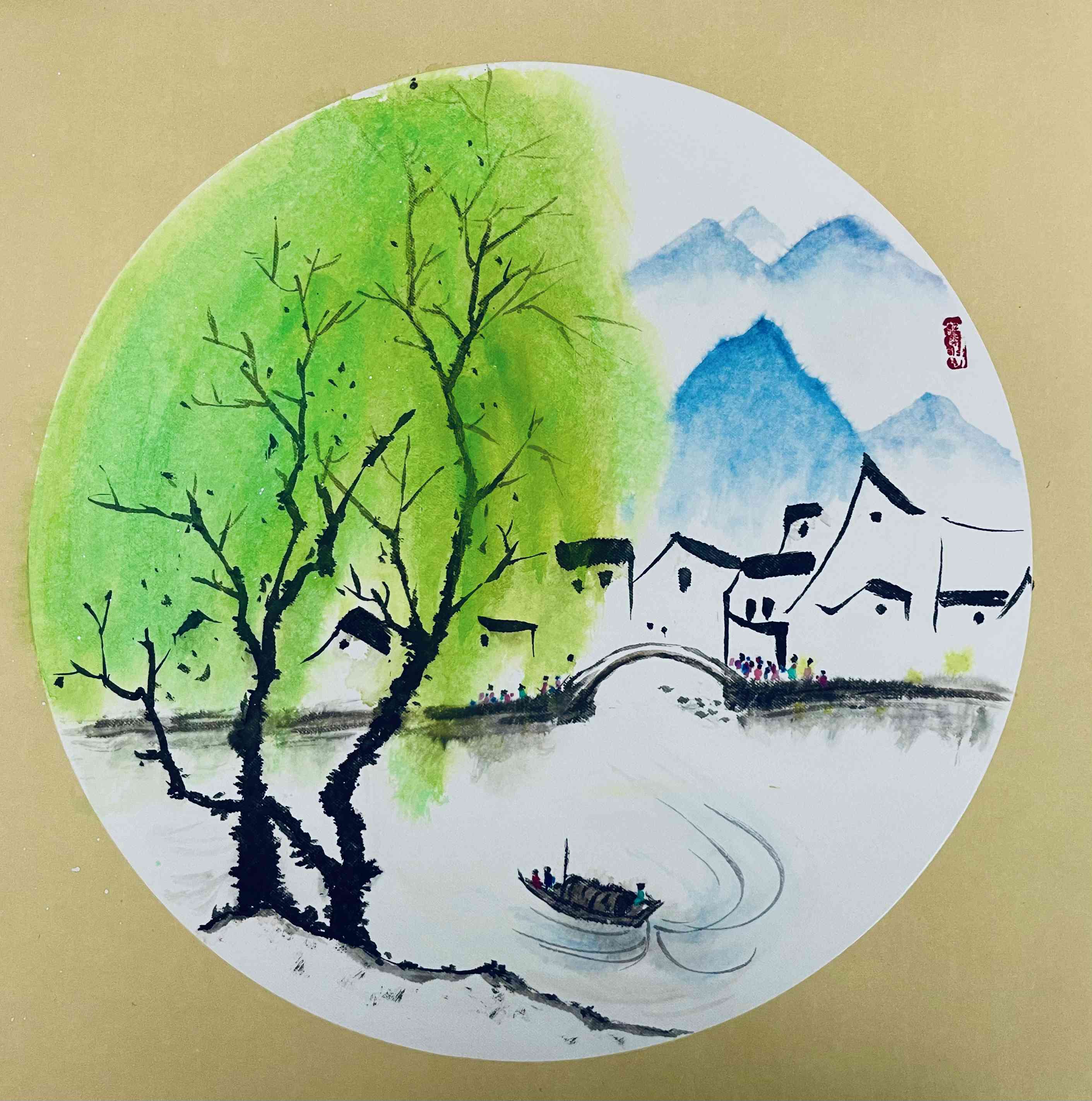 首观李冬霞女士的众幅山水丹青作品,画中山水以扇形画面为呈现,又以小写意基础为本源,笔墨绘之,是有简笔之皴擦,亦有赋色之青绿,前者细腻而不失于澄怀,后者味象而不失于其真,如此一来,就既是有突破了小幅画品的规范性,同时也更是有摆脱了匠俗搬照的生硬性,取而代之的则是一种能够根植于江南水韵的美学境界和意象格调,水墨渍染以成境,墨色交融更抒情!文人品性,尽赋其中,纵览之余,可谓盎然!