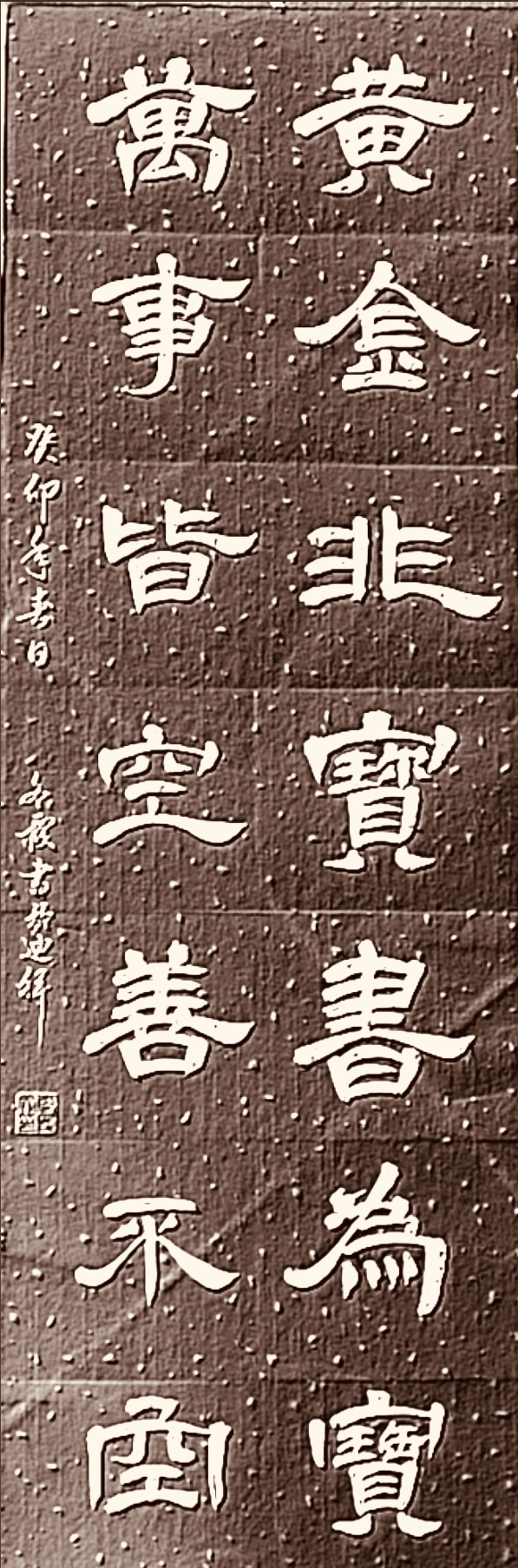 继观李冬霞女士的书法作品,其书法取法是有胎息于二王之法脉,更是博涉于诸帖之余韵,行草用笔以情而驱却不盲目,墨迹挥毫更是浑厚而苍劲,线条所到之处,时而牵丝于映带,时而左右于旁顾,恰是一点之内殊衄挫于毫芒,一画之间变起伏于峰杪!字势粗犷有遒健,章法奇绝而沉雄,故而观赏即可深感其书气之磅礴浩荡!隶书之作,则更为古典,其隶书蚕头燕尾之势尤在,笔墨皆是古朴而有力,欣赏其势,或感有《乙瑛碑》的骨肉之均匀,或感有《曹全碑》的字法之遒秀,汲古出新,肃穆正大!